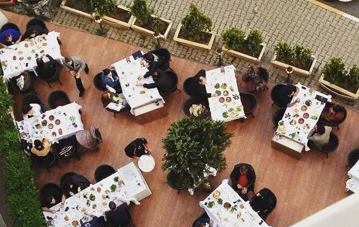 Mekanımız, 50'den 150 kişiye kadar olan yemekli organizasyonlar için ideal bir kapasiteye sahiptir. Şehir merkezinde kolay ulaşılabilir bir konumda olması, yüksek tavanı ve şehir manzarası ile dikkat çeken restoranımız, bahçe kullanımı da sunarak farklı bir deneyim vaat etmektedir.