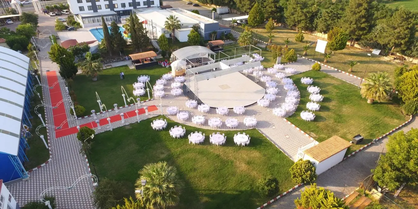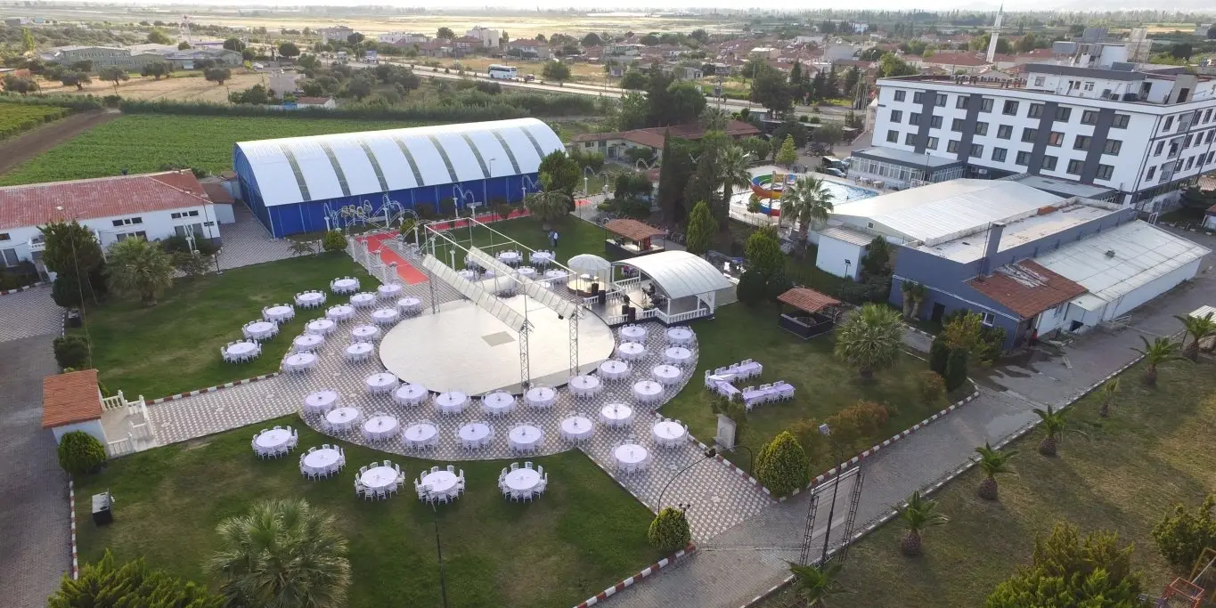 Adramis Termal Otel, benzersiz bir düğün ve organizasyon deneyimi sunuyor. 15 yıllık tecrübesiyle her detayın mükemmel olması için çabalayan otelimiz, 2000 ila 3000 kişilik kapasitesiyle her türlü ihtiyacınıza uyum sağlayabilir. Açık ve kapalı mekan seçeneklerimizle hayalinizdeki düğünü gerçekleştirebilir, bahçemizde unutulmaz bir kır düğününe ev sahipliği yapabilirsiniz. Siz ne isterseniz, biz onu yaparız anlayışı ile yemek menüsünden dekorasyona kadar tüm detayları sizin isteklerinize göre şekillendiriyoruz. Profesyonel ekibimiz ile geniş paket seçenekleri sunarak düğününüzü unutulmaz kılmak için buradayız. Ayrıca, düğün haricinde sünnet düğünü, nişan, parti gibi birçok farklı etkinliğinizde de yanınızdayız. Adramis Termal Otel, en özel gününüzde yanınızda olmak için sabırsızlanıyor!