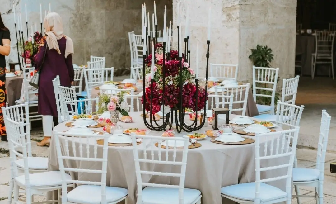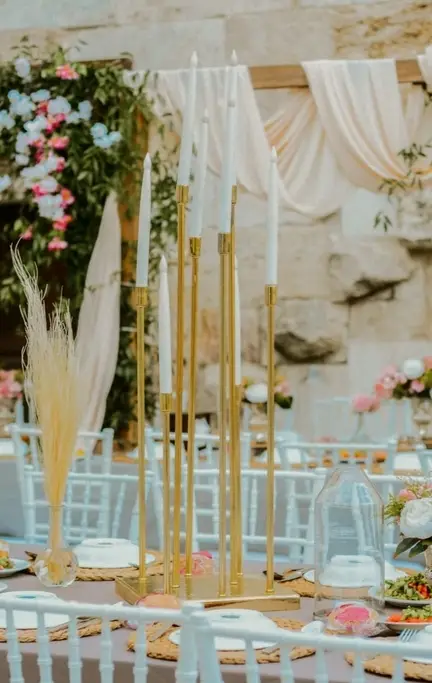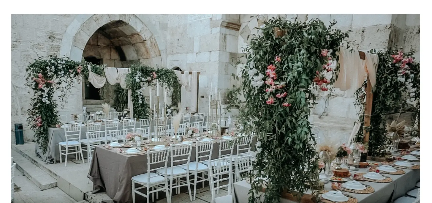Açık ve kapalı alanlarda sunduğumuz dekorasyon alternatifleriyle, düğününüzü kişiselleştirebilme fırsatı veriyoruz. Tiffany sandalyeler, şamdanlar ve çiçek buketleriyle süslenmiş masalarımız, davet alanınıza zarafet katıyor. Kapalı alanda ise ahşap banklar ve minimal çiçek buketleri ile sıcak bir atmosfer yaratıyoruz.
