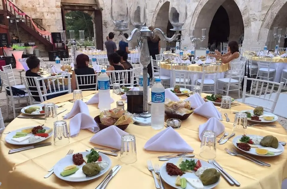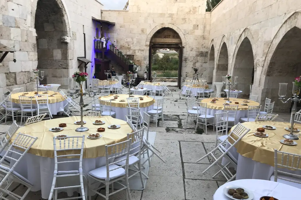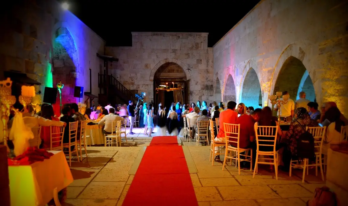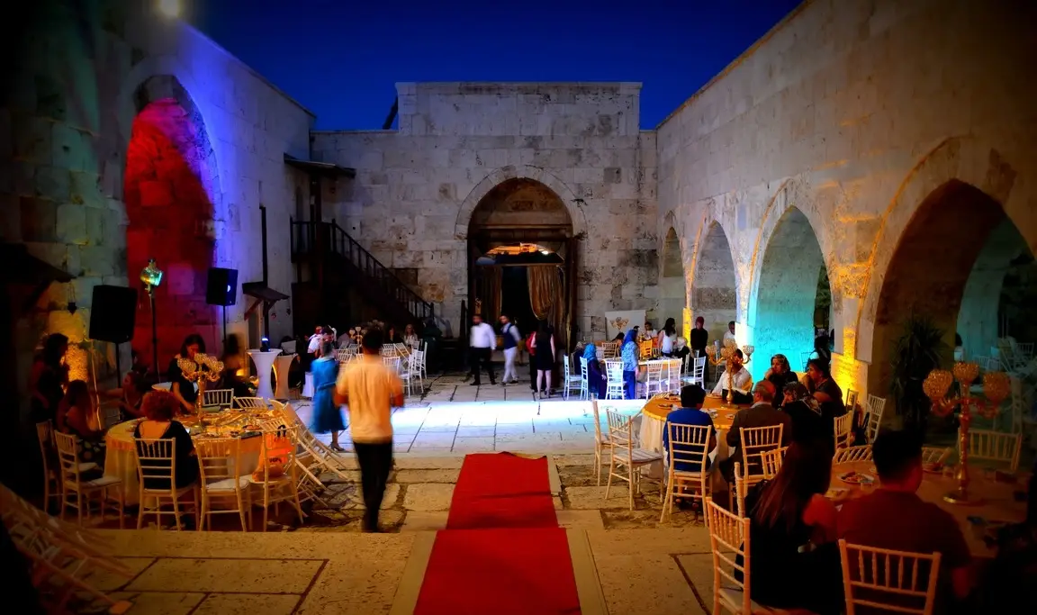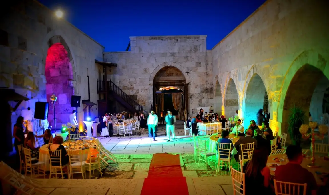 Akhan Kervansaray, 700 kişilik kapasitesiyle dört mevsime uygun davet alanları sunar. Açık havada tarihi duvarlar eşliğinde gökyüzü altında eşsiz bir atmosfer, kapalı alanda ise yüksek tavanlı, otantik bir mekanda evet deme imkanı sağlıyor. Her türlü davet ve etkinlik için ideal mekanlarımızla hizmetinizdeyiz.