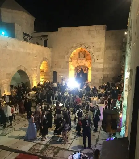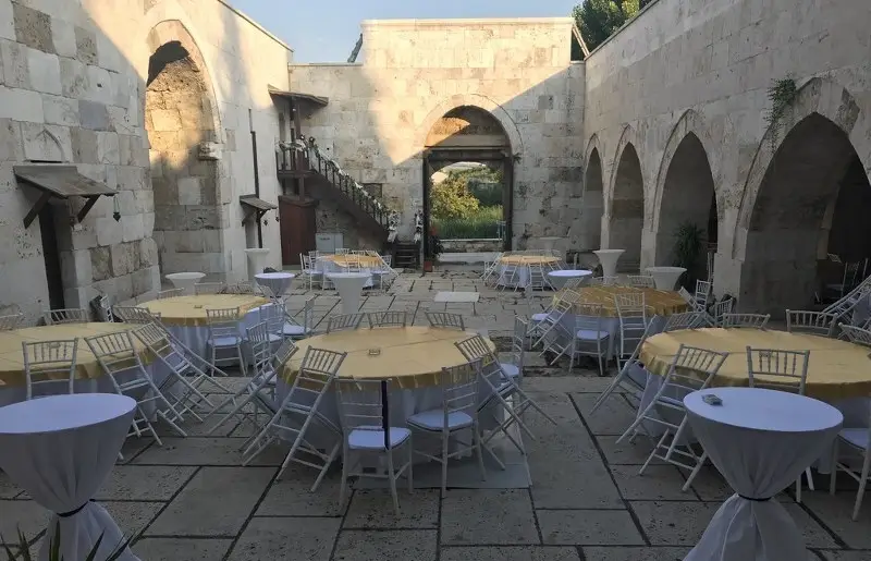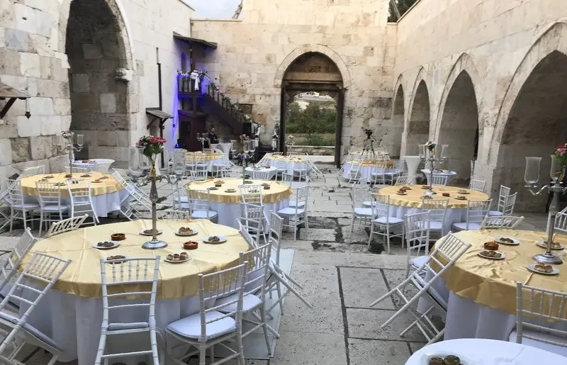Evet, Akhan Kervansaray'da hem açık hem kapalı alan olmak üzere iki farklı davet alanı bulunmaktadır. Açık hava alanı, tarihi duvarlar ve geniş dans pisti ile benzersiz bir atmosfer sunarken, kapalı alan, yüksek tavanlı ve otantik bir atmosferde düğün yapmanızı sağlar.