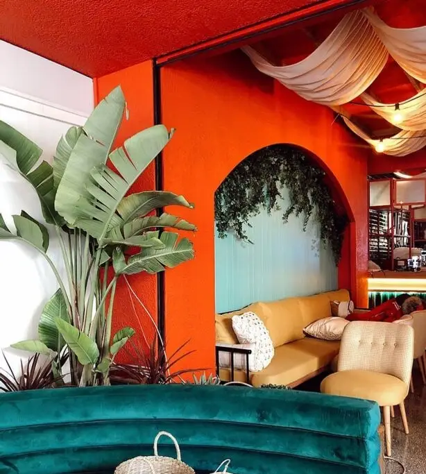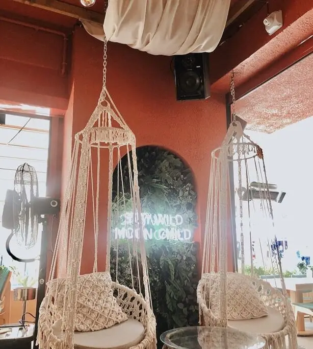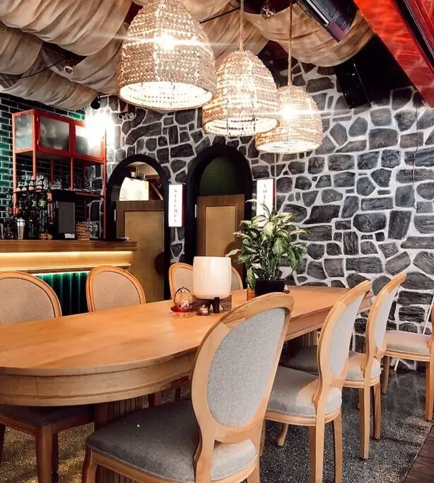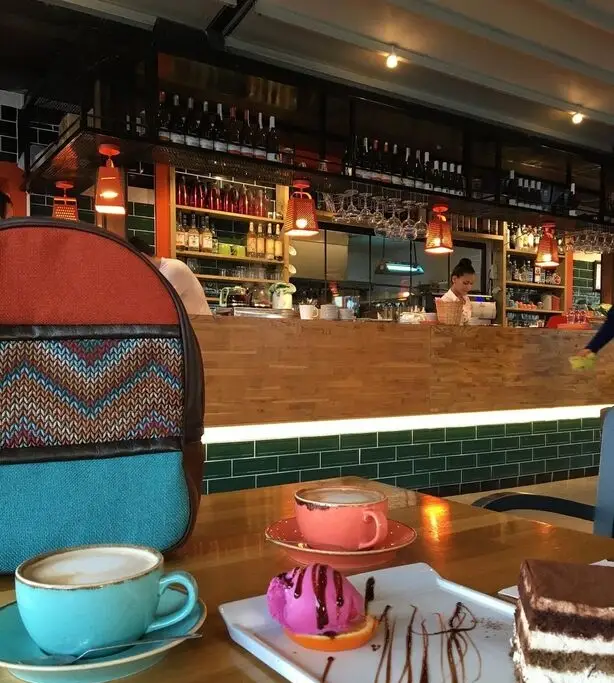 Duvarları canlı renklerle süslenmiş ve çeşitli bitkilerle zenginleştirilmiş Alin's Cafe Restaurant; tavanındaki rengarenk objeler ile göz alıcı bir görsel şölen sunarken, doğal bir atmosferi de beraberinde getiriyor. Ahşap masalar ve şık sandalyelerle desteklenen düzenlemeler, mekanın estetik ve rahatlığını ön plana çıkarır. Kapalı bölümdeki taş duvar konsepti ise, misafirlerine sıcak ve samimi bir ortam sunuyor.