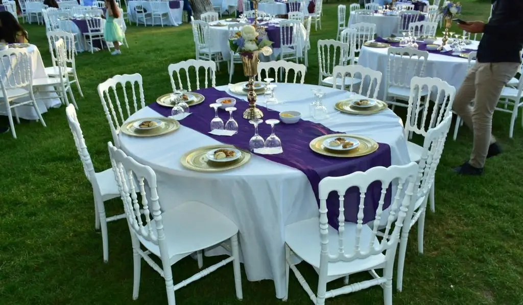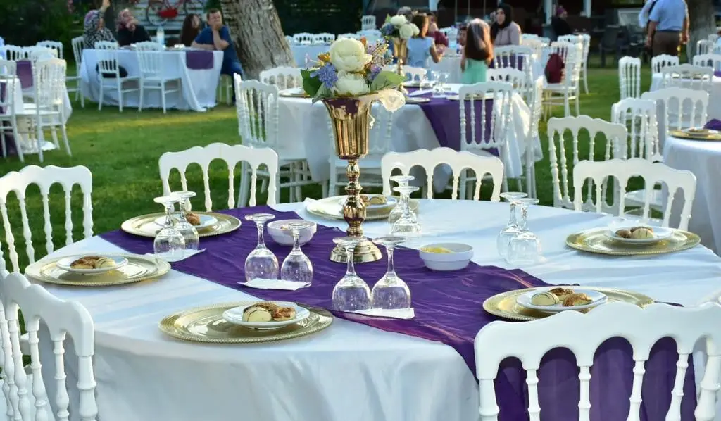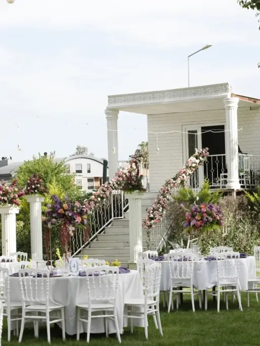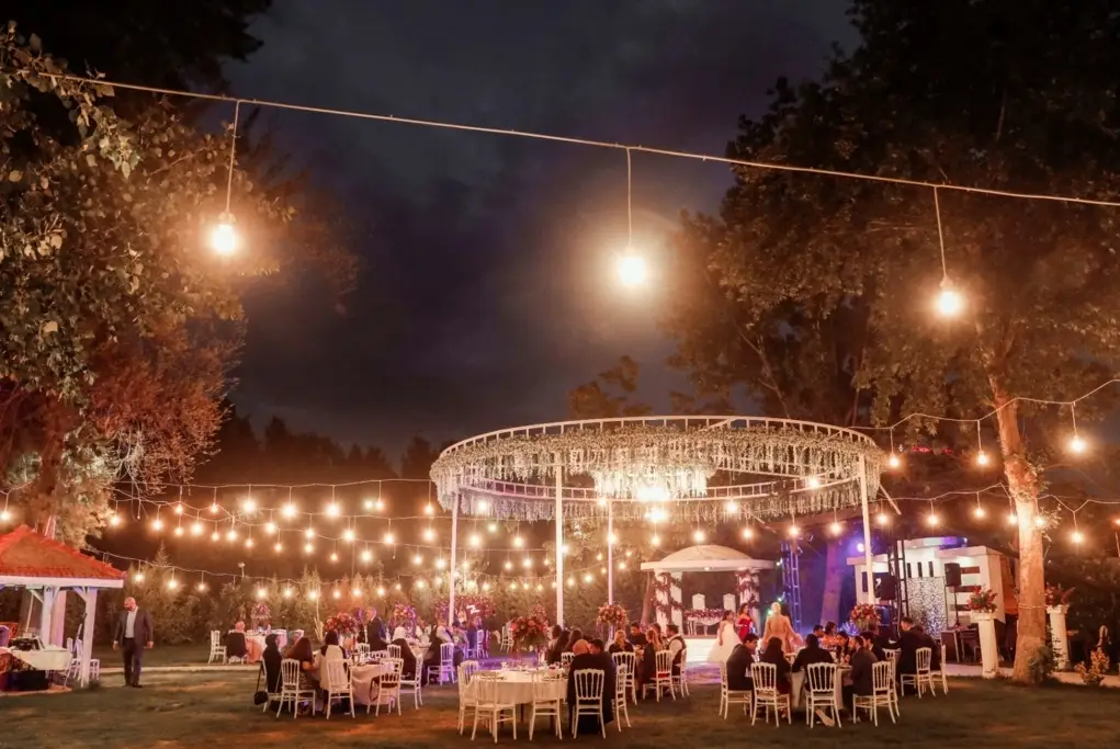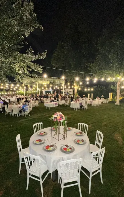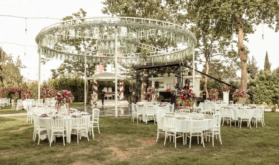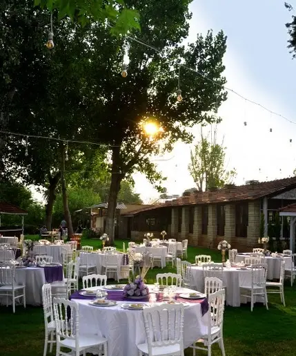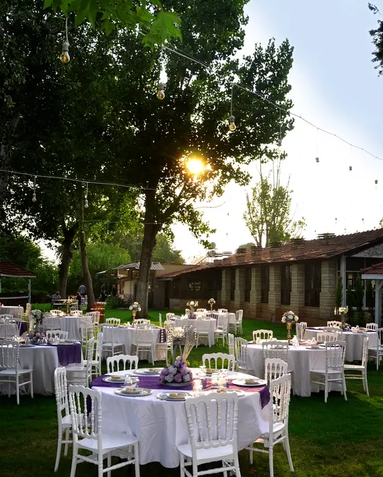 Kır bahçemiz bohem ve otantik bir atmosfer sunarken, modern detaylarıyla göz dolduruyor. Ağaçlarla çevrili alanda, banket masaları ve napolyon sandalyelerle bezenmiş oturma düzenleri hazırlıyoruz. Kapalı salonlarımız da benzer estetik ve rahatlıkta düzenlenmiş, temanıza göre özelleştirilebilen detaylarla dekore edilmiştir.