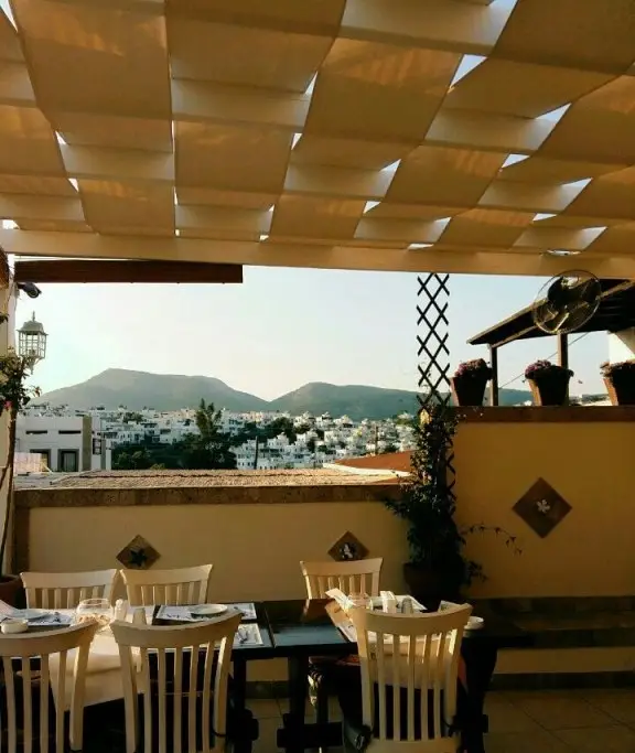 Deniz kenarında, Bodrumun masmavi sularına karşı büyüleyici bir manzaraya sahiptir.