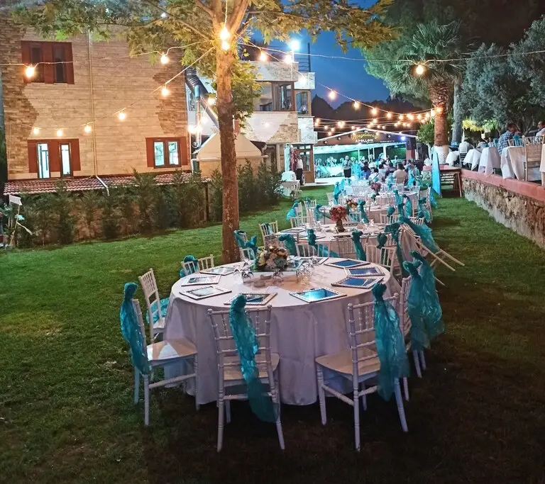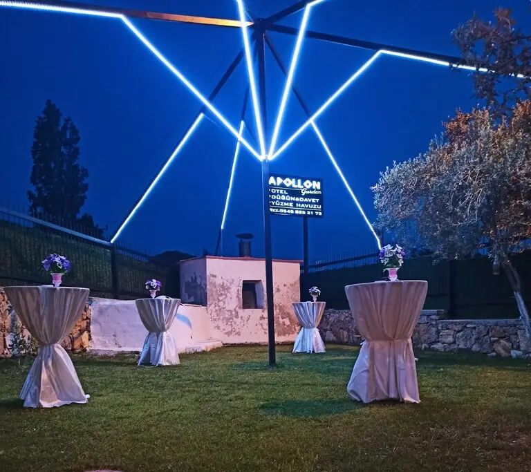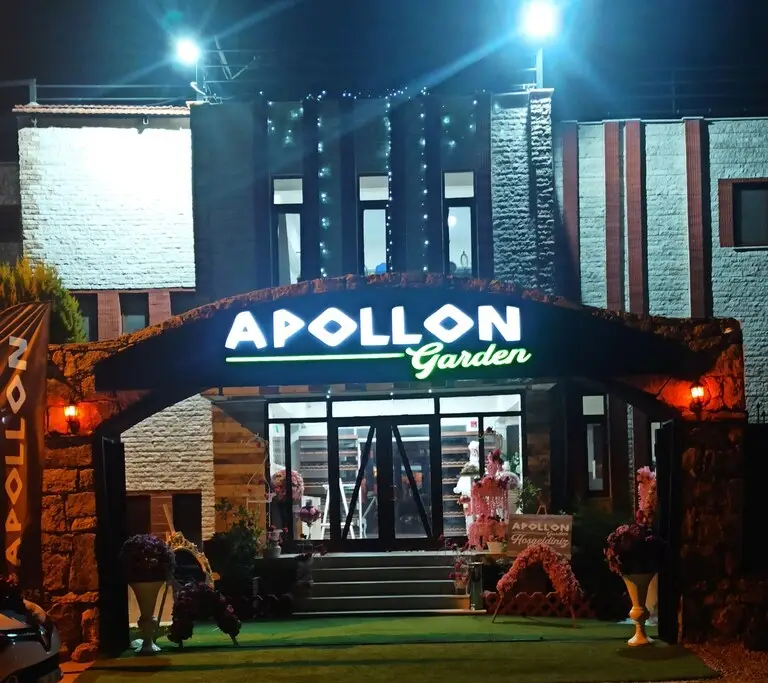 Apollon Garden, deneyimli bir organizasyon ekibi, geniş kapasiteli otopark, canlı müzik ve ışıklandırma sistemi hizmetleri sunar.