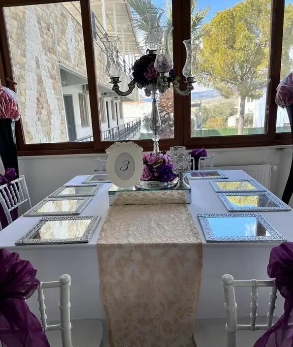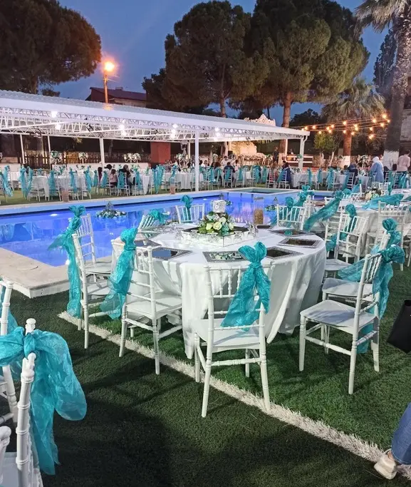 Mekanımızda, bohem ruhunu yansıtan kır bahçemiz ve elegan kapalı davet alanımızla, her zevke hitap eden dekorasyon seçenekleri sunuyoruz. Açık alanda çimen zemin üzerine yerleştirilmiş yuvarlak banket masalarımız ve Tiffany sandalyelerimiz ile şıklığı yakalarken, kapalı alanımızda elegan masa düzeni ve çiçekler ile davetiyenizin etkisini artırıyoruz. Her iki alanda da, çiftlerimizin tercihlerine göre özelleştirme imkanı sunuyoruz.