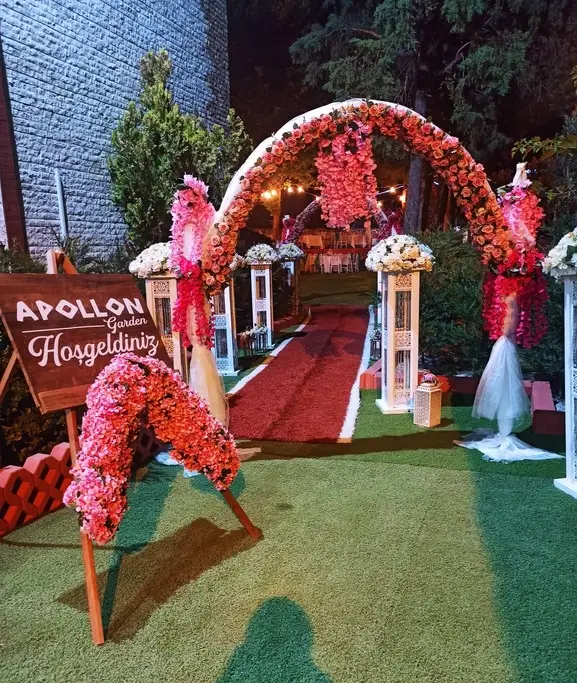 Apollon Garden'da, düğün öncesi masa düzeni denemesi yaparak, konuklarınıza sunacağınız atmosferi önceden planlayabilirsiniz. Düğün günü, konuklarınız 100 araç kapasiteli otoparkımızı kullanabilir, canlı müzik ve mükemmel ışıklandırma sistemi ile eğlencenin tadını çıkarabilirler. Ayrıca, özel menü seçenekleriyle damak zevkinize uygun bir yemek servisi sunuyoruz. Düğün organizasyonunuzu, deneyimli ekibimizle birlikte hayal ettiğiniz gibi planlayın ve şehrin gürültüsünden uzak, doğayla iç içe bir mekanda unutulmaz anlar yaşayın.
