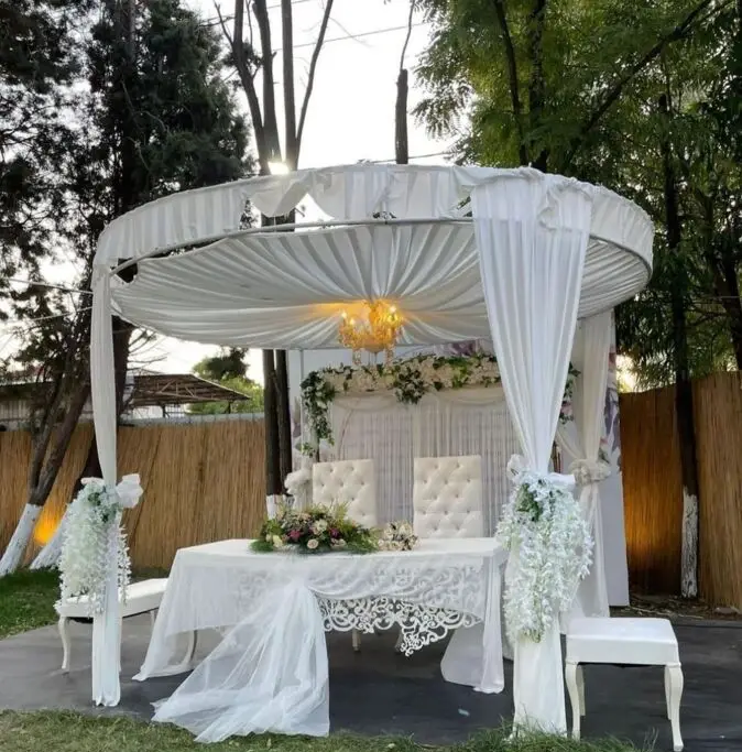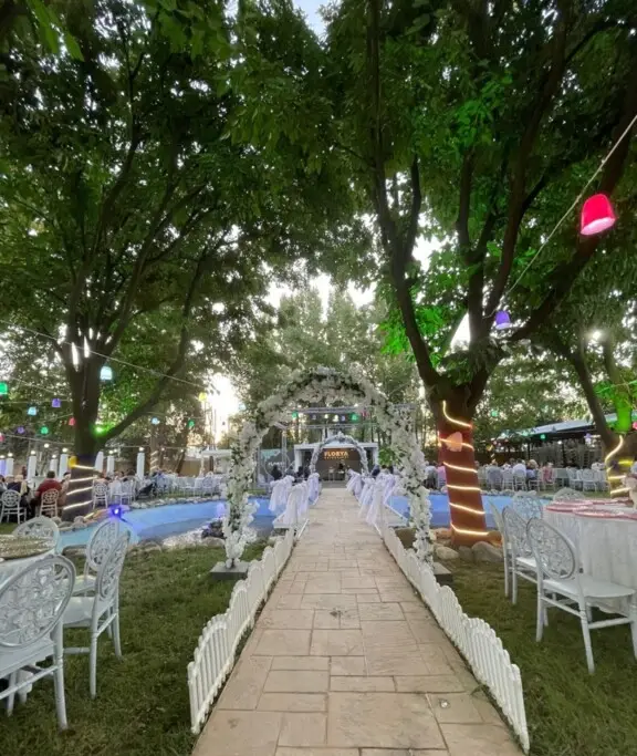 Zevklerinize göre şekillendirebileceğiniz dekorasyon seçenekleriyle, Aras Kır Bahçe'de rüya gibi bir düğüne imza atabilirsiniz. Beyaz yuvarlak masalar, tiffany sandalyeler ve renk seçimlerinize uygun örtülerle süslenmiş bir alanda, şelale ve ışıklandırma detaylarıyla zenginleştirilmiş bir ortamda evet diyebilirsiniz.