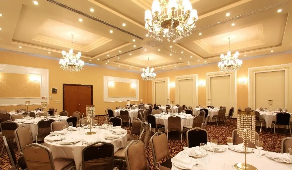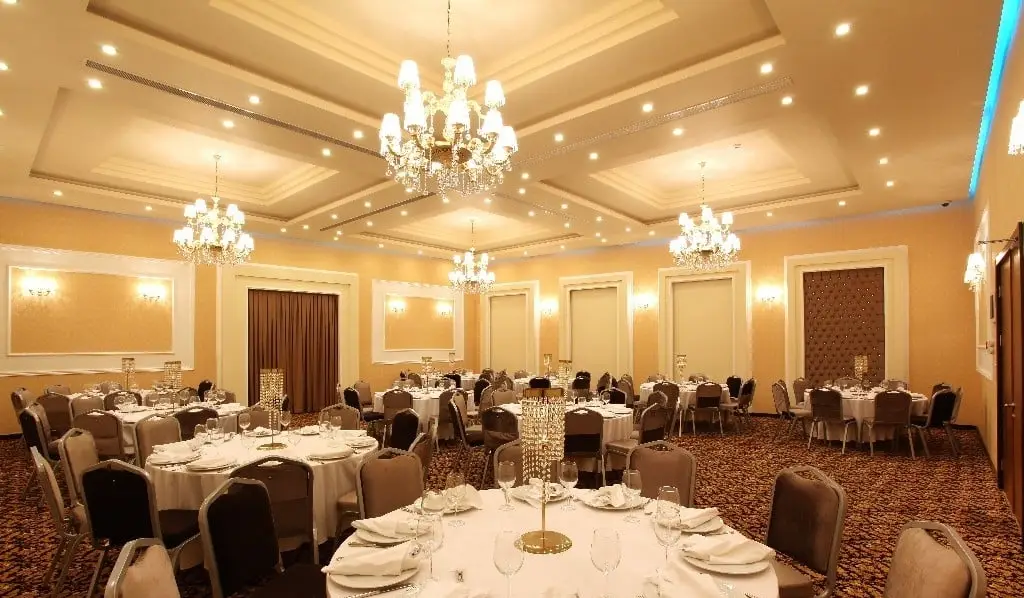 Evet, otelimiz toplantı salonu ve Armani restoran gibi birden fazla davet alanına sahiptir. Farklı oturma düzenlerine uygun toplantı salonumuzda 190 kişilik etkinlikler düzenlenebilmekte, Armani restoranımızda ise 100 kişi kapasiteli restoranımızda açık büfe veya a la carte hizmet verilmektedir.