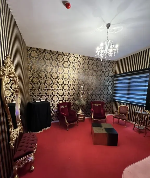Salonumuzdaki altın rengi sandalyeler ve siyah örtülü masalarla estetik bir oturma düzeni hazırlıyoruz. Kristal şamdanlar, aynalı çerçeveler ve duvarlardaki altın renkli detaylarla iç mekanımıza zarafet katıyoruz. Nikah ve önemli anlarınız için özel olarak süslenmiş masalar da mevcuttur.
