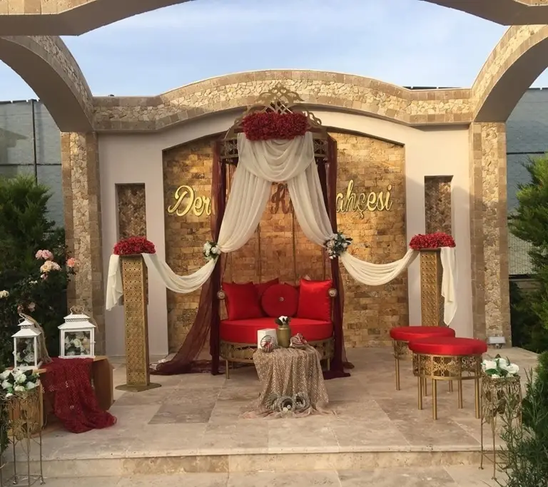 Ata Dervişan Tesisleri, Samandağ’ın büyüleyici doğasında, kına ve bekarlığa veda gecelerinizi unutulmaz kılacak şıklıkta bir mekan sunuyor. Biz, hayalinizdeki gecenin nasıl olması gerektiğini biliyor, ve bu özel günü gerçekleştirmek için yarım asrı aşkın süredir edindiğimiz deneyimlerle yanınızdayız. Her bir detayın üzerinde özenle durarak, sizi ve misafirlerinizi şaşırtacak yaratıcılıkta organizasyonlar tasarlıyoruz. Ata Dervişan Kır Bahçesi’nde, hayallerinizdeki kına gecesini gerçeğe dönüştürmek için profesyonel ekibimizle birlikte çalışıyor, her bir detayda mükemmelliği hedefliyoruz.