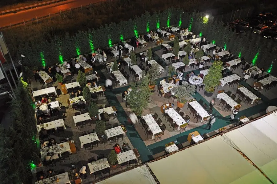Açık ve kapalı davet alanı var. Açık davet alanı teras ve bahçe olarak da ikiye ayrılıyor.