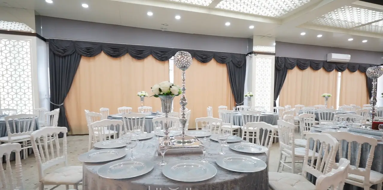 Yuvarlak masalar, tiffany ve napolyon sandalyelerle şıklığı ve zarafeti ön plana çıkaran Bademli Düğün Davet, farklı renk ve tasarımlarda dekorasyon seçenekleri sunarak düğünlerinizi kişiselleştirme fırsatı veriyor. Aydınlatma ve süsleme detaylarımızla, her düğünü eşsiz kılan bir atmosfer yaratıyoruz.