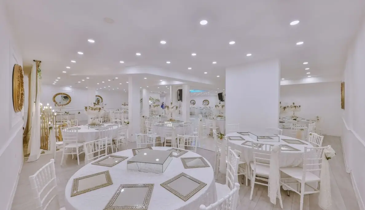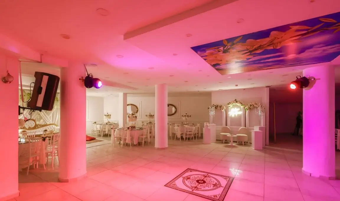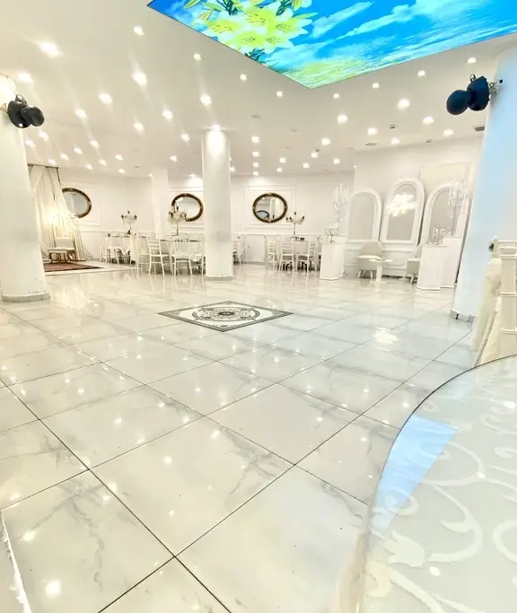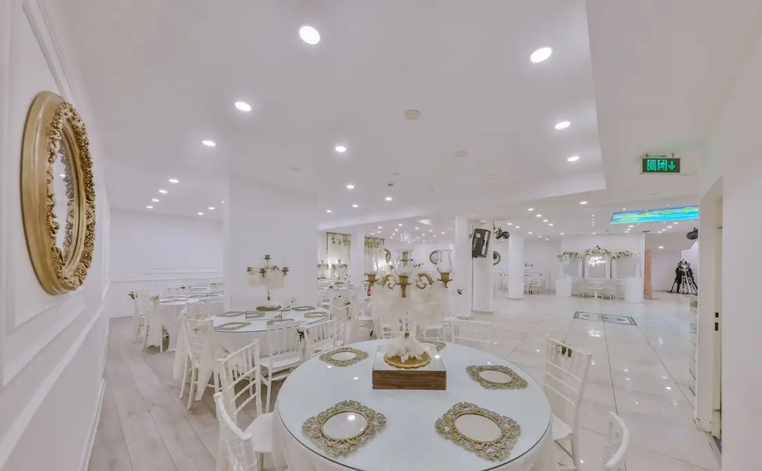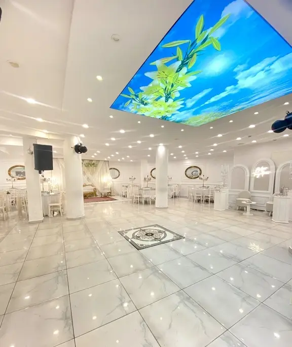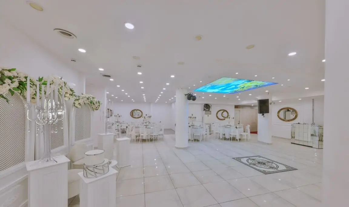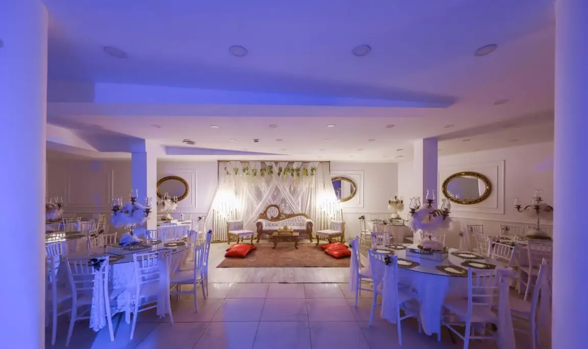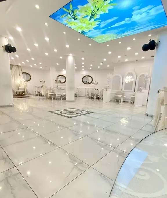 Zarif dekorasyonu ile dikkat çekici bir atmosfer sunan mekanımızda, aydınlık ve ferah bir ortam yaratmak için spot ışıklandırmalar ve gökyüzü temalı süslemeler kullanıyoruz. İster romantik ister modern bir konsept seçin, rustik dokunuşlarla süslediğimiz nişan masası ve şık Tiffany sandalyelerle özel gününüzü kutlayabilirsiniz.