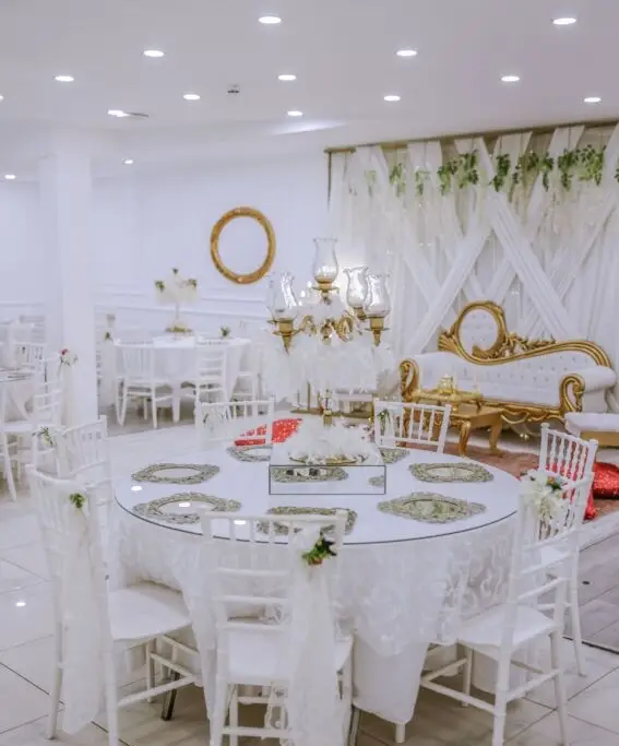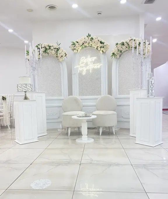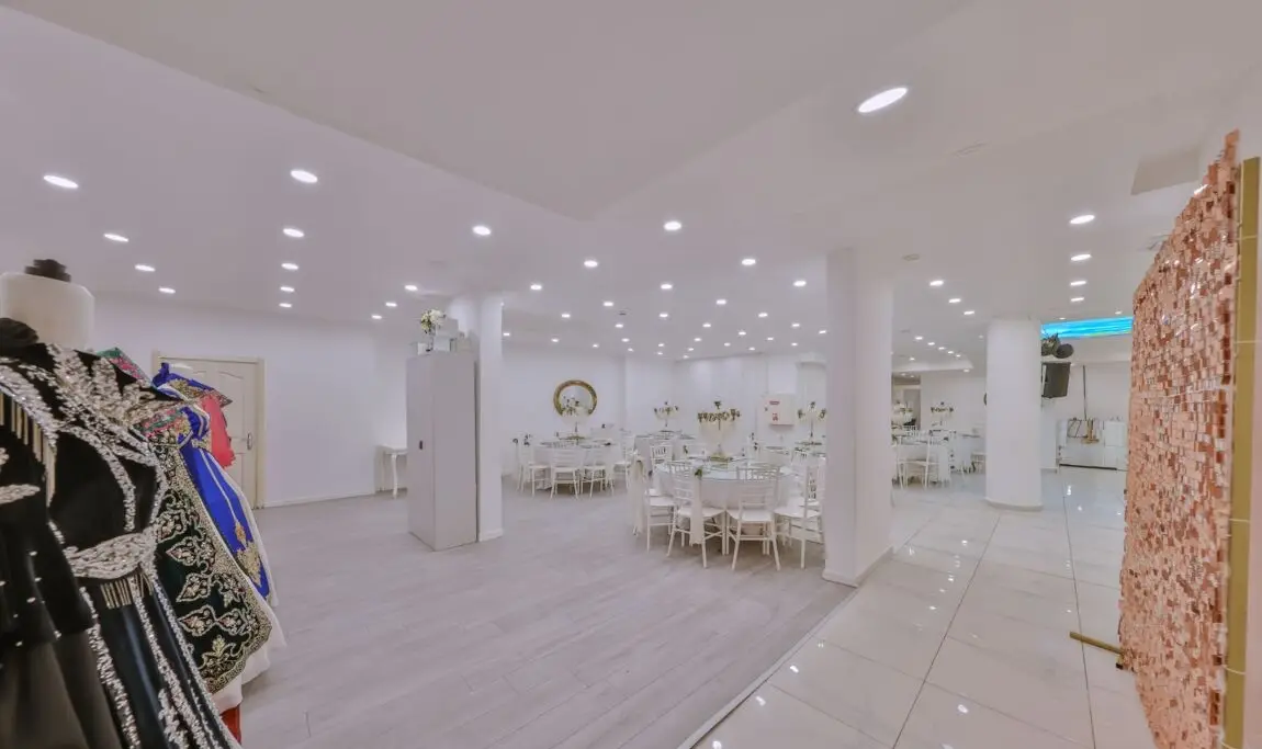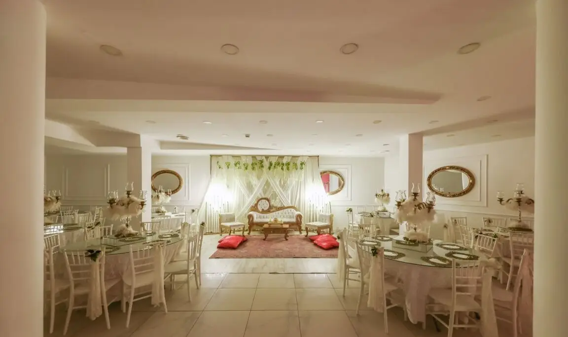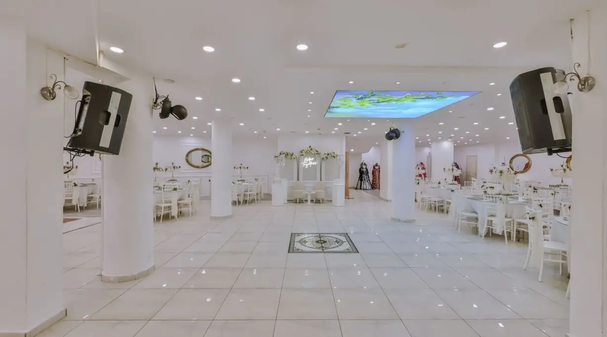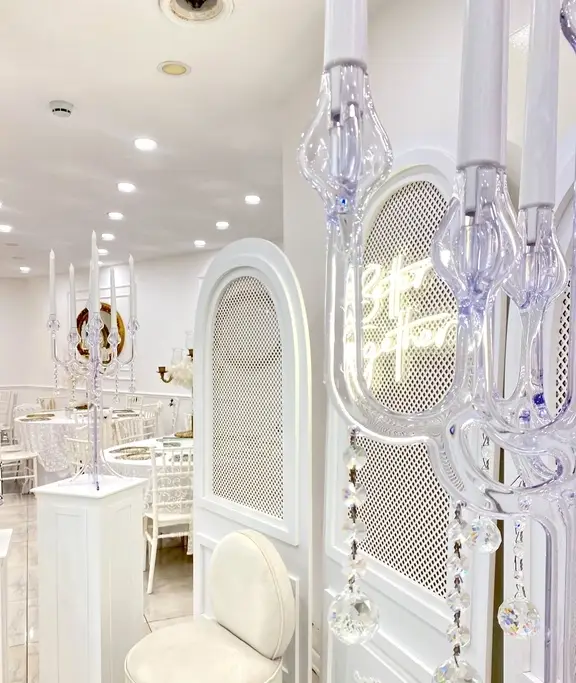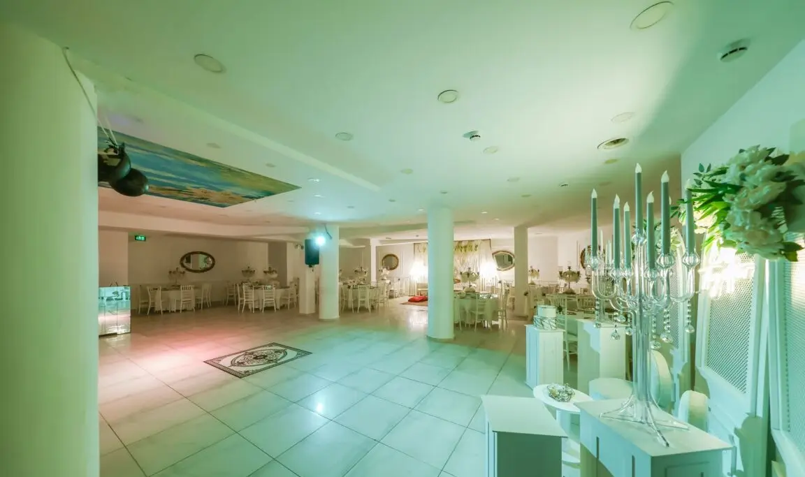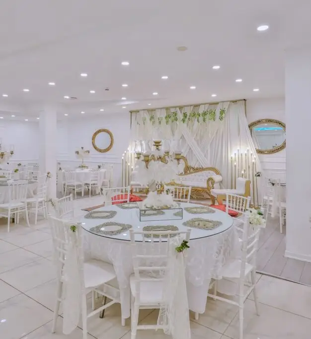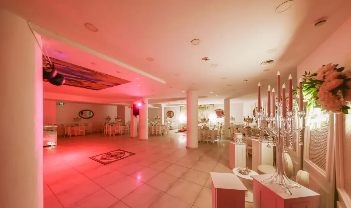 Zarif dekorasyonu ile dikkat çekici bir atmosfer sunan mekanımızda, aydınlık ve ferah bir ortam yaratmak için spot ışıklandırmalar ve gökyüzü temalı süslemeler kullanıyoruz. İster romantik ister modern bir konsept seçin, rustik dokunuşlarla süslediğimiz nişan masası ve şık Tiffany sandalyelerle özel gününüzü kutlayabilirsiniz.