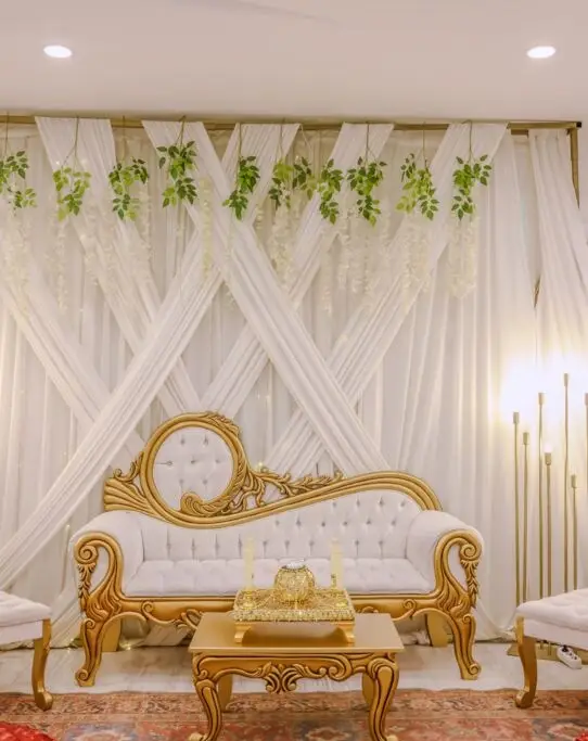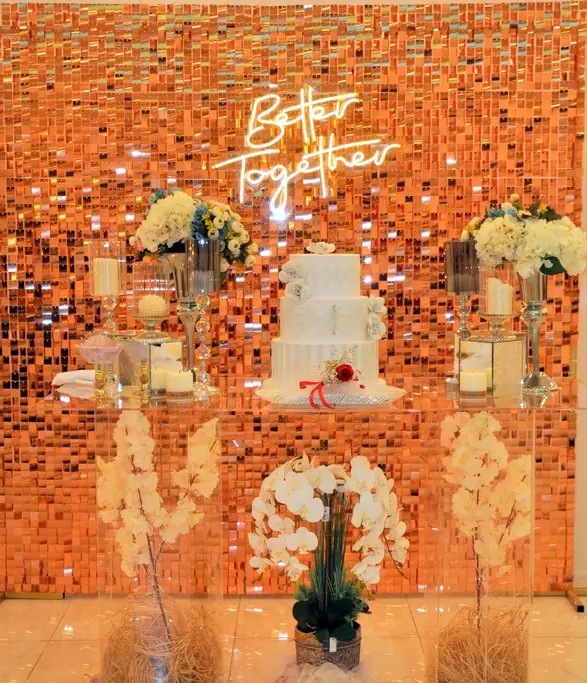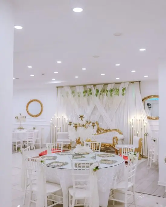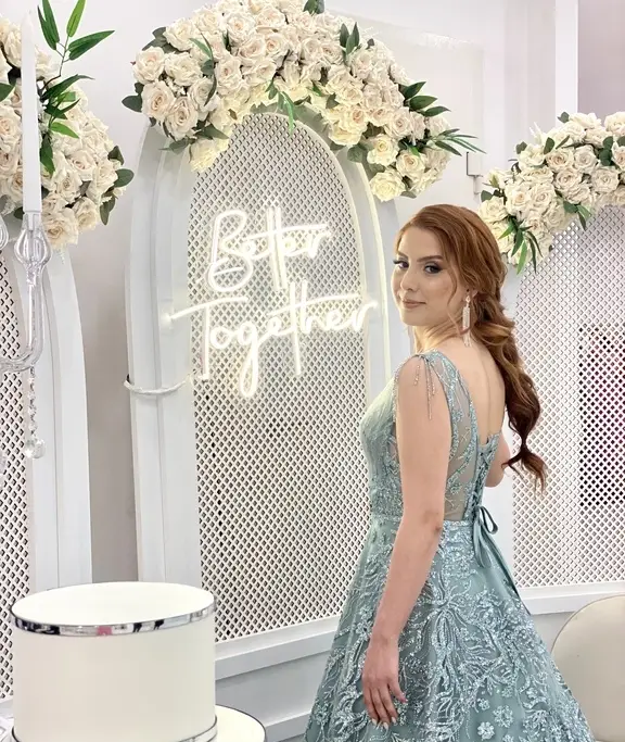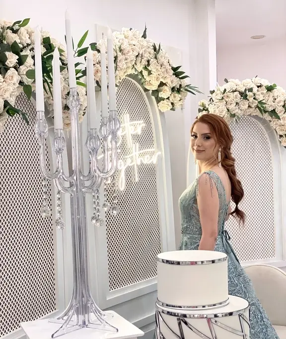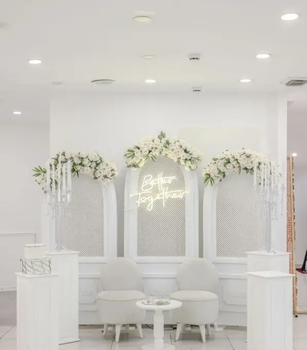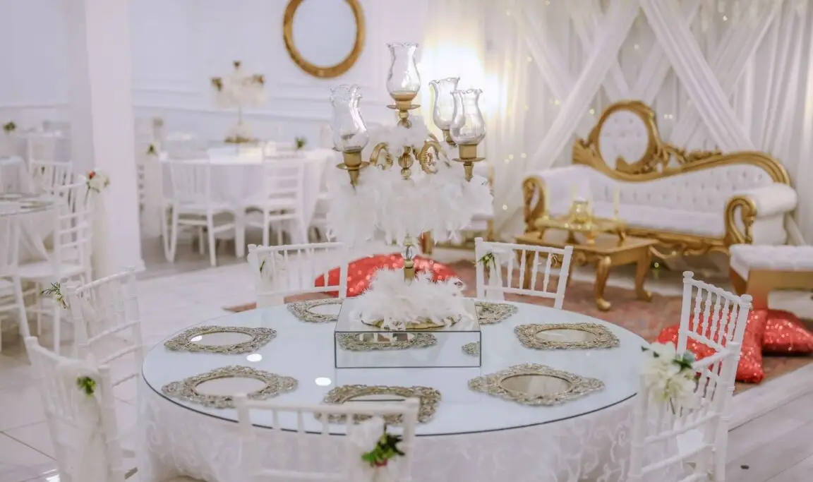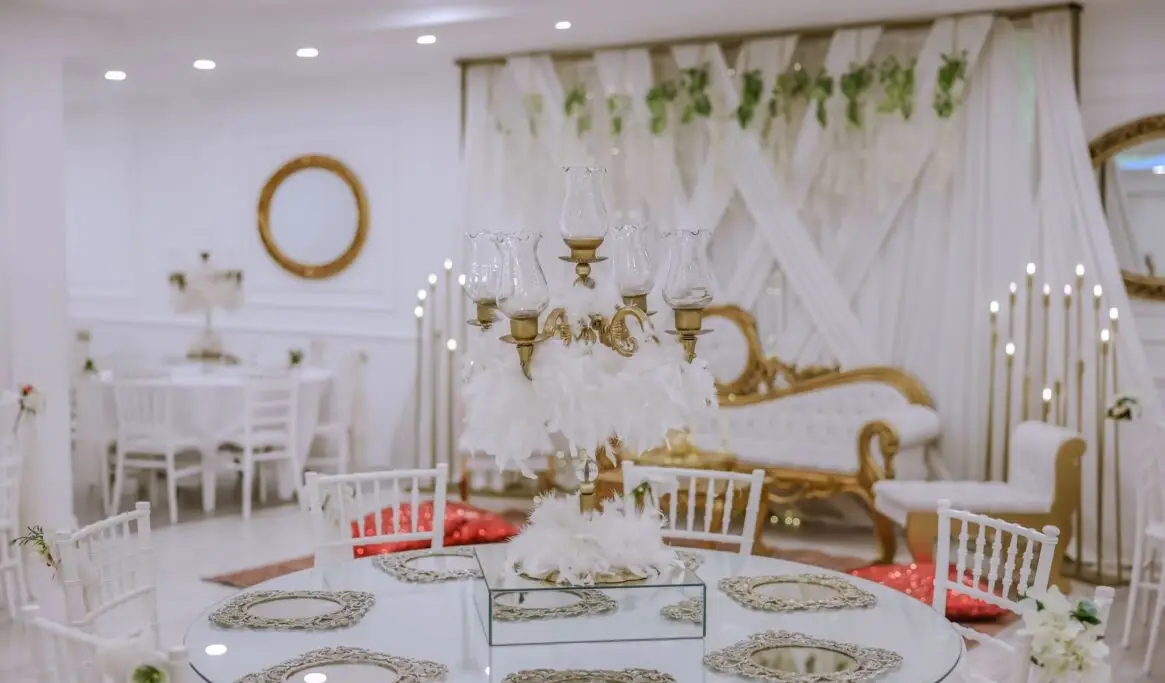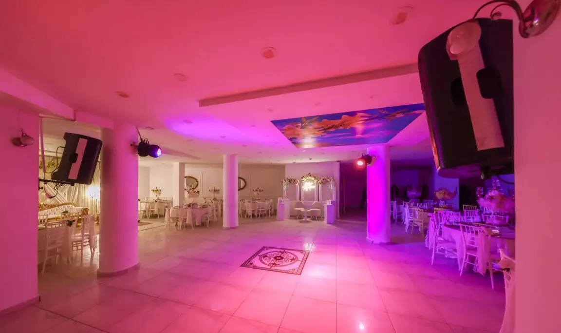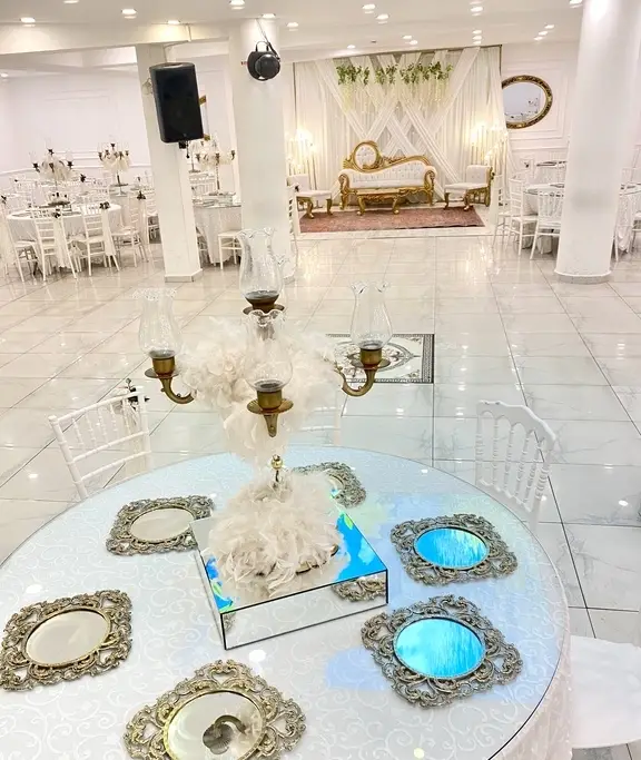 Zarif dekorasyonu ile dikkat çekici bir atmosfer sunan mekanımızda, aydınlık ve ferah bir ortam yaratmak için spot ışıklandırmalar ve gökyüzü temalı süslemeler kullanıyoruz. İster romantik ister modern bir konsept seçin, rustik dokunuşlarla süslediğimiz nişan masası ve şık Tiffany sandalyelerle özel gününüzü kutlayabilirsiniz.