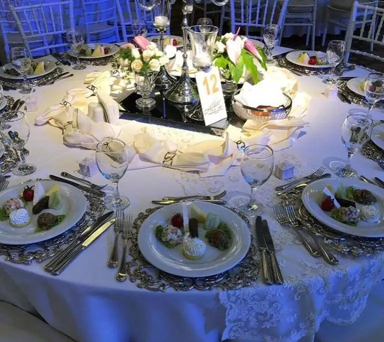 Yemekli davetleriniz için profesyonel aşçılarımız tarafından özenle hazırlanan zengin menü seçeneklerimizle, konuklarınıza damak tadına uygun lezzetler sunuyoruz. Standart düğün menüsünün yanı sıra, yaş-kuru pasta, kuru yemiş ve içecek gibi çeşitli ikram alternatifleri de mevcuttur. Her bir detayı sizin istekleriniz doğrultusunda şekillendirmeye özen gösteriyoruz.