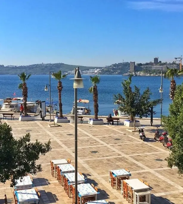 Berk Balık, Bodrum Kalesi ve denizin muhteşem manzaralarını sunan denize sıfır bir konumda yer alır.
