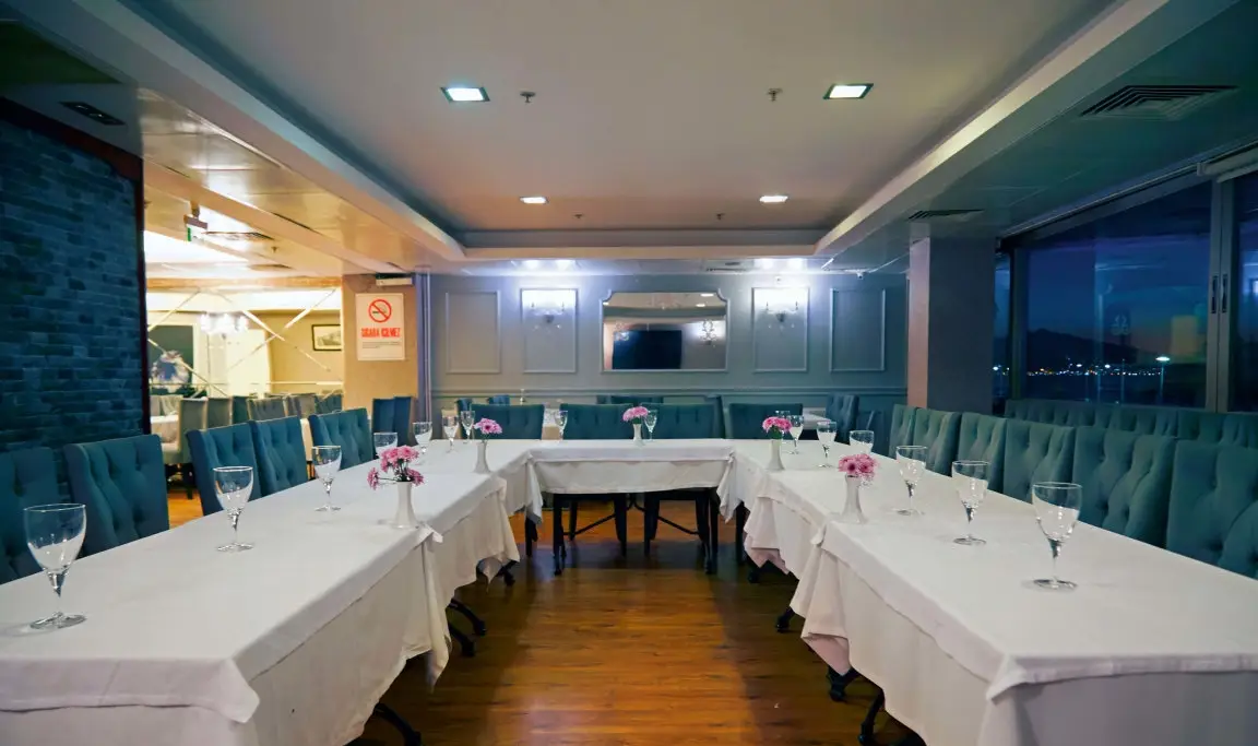450 kişilik büyüleyici bir alana sahip olan restoranımızda, nikah, doğum günü, kurumsal etkinlikler gibi çeşitli organizasyonlar için ideal bir mekan sunuyoruz. Sizlerle önceden iletişime geçerek özel gününüzü hayal ettiğiniz gibi düzenliyor, kişiye özel süslemeler ve organizasyonlar yapılmasına olanak tanıyoruz. İster kapalı alanlarımızda ister açık alanımızda, canlı müzik eşliğinde, sevdiklerinizle dans ederek veya sohbet ederek keyifli zamanlar geçirebilirsiniz. Biz, deniz manzarası eşliğinde unutulmaz anlar yaşamanız için buradayız.