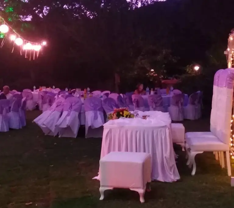 Restoran olarak başladığımız serüvenimizde, yıllar içinde edindiğimiz tecrübe sayesinde, düğünlerde a'dan z'ye her detayı büyük bir ustalıkla yönetebiliyoruz. Hem yuvarlak hem dikdörtgen masa düzenimiz, çeşitli renk seçenekleriyle sunulan sandalye giydirmelerimiz, şık masalarımız ayna, kristal şamdan ve mumlarla süsleniyor. Kendi müzisyenlerimize ek olarak, dışarıdan anlaşılacak müzik gruplarına da açığız.
