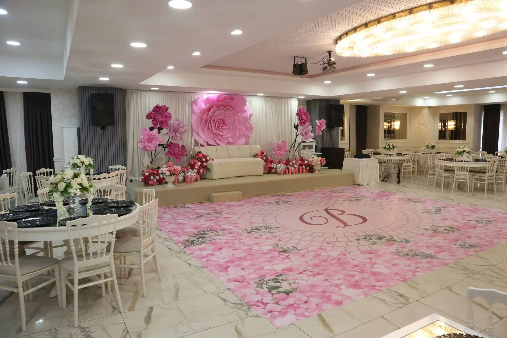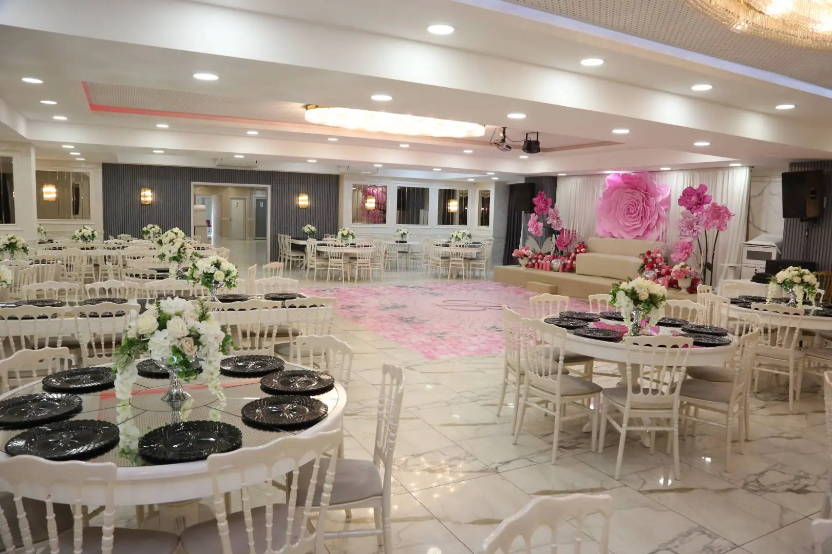 Bosna Sancak Davet Salonları, kapalı davet alanında 100 ila 450 kişi kapasitesi ile nişan ve söz törenleri için ideal bir seçenek sunuyor. Yüksek tavanlı ve ferah kapalı salonu, modern bir atmosferde konforlu bir organizasyon düzenlemenize olanak tanır. Şamdanlar, suplalar ve yapay çiçek süslemeler, mekanın zarafetini tamamlayan dekoratif detaylardır.