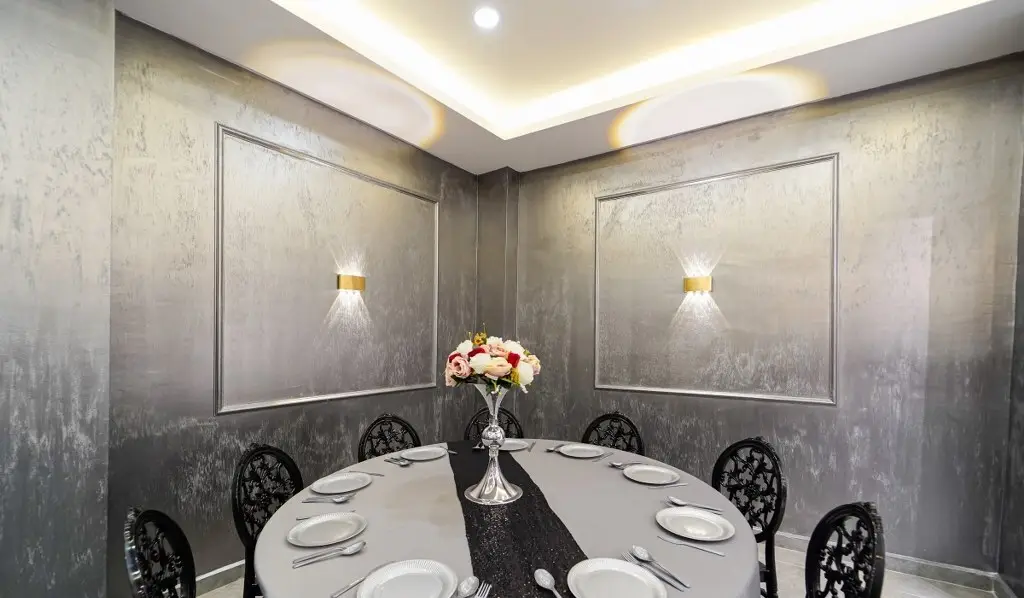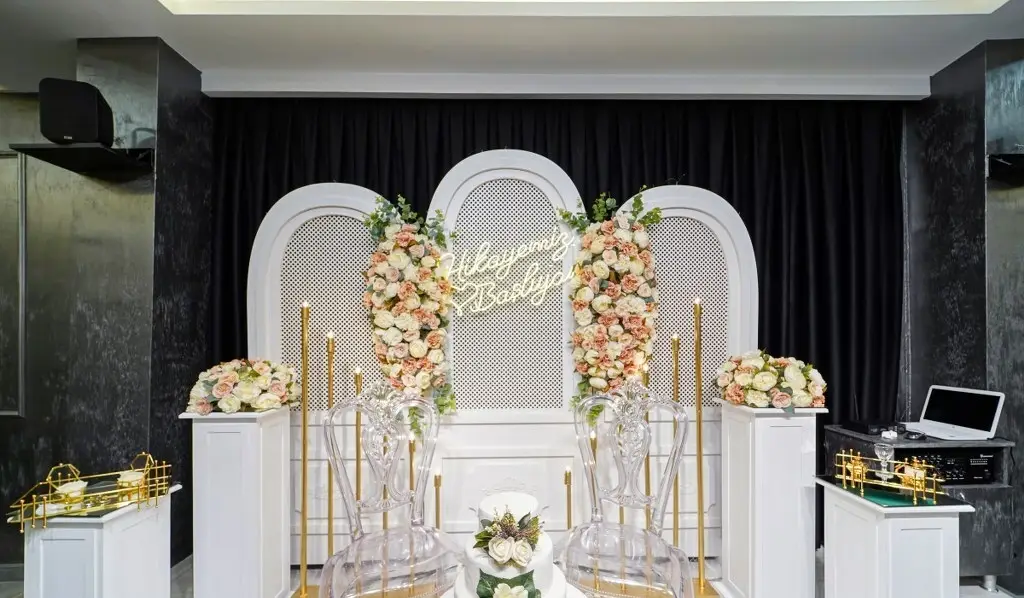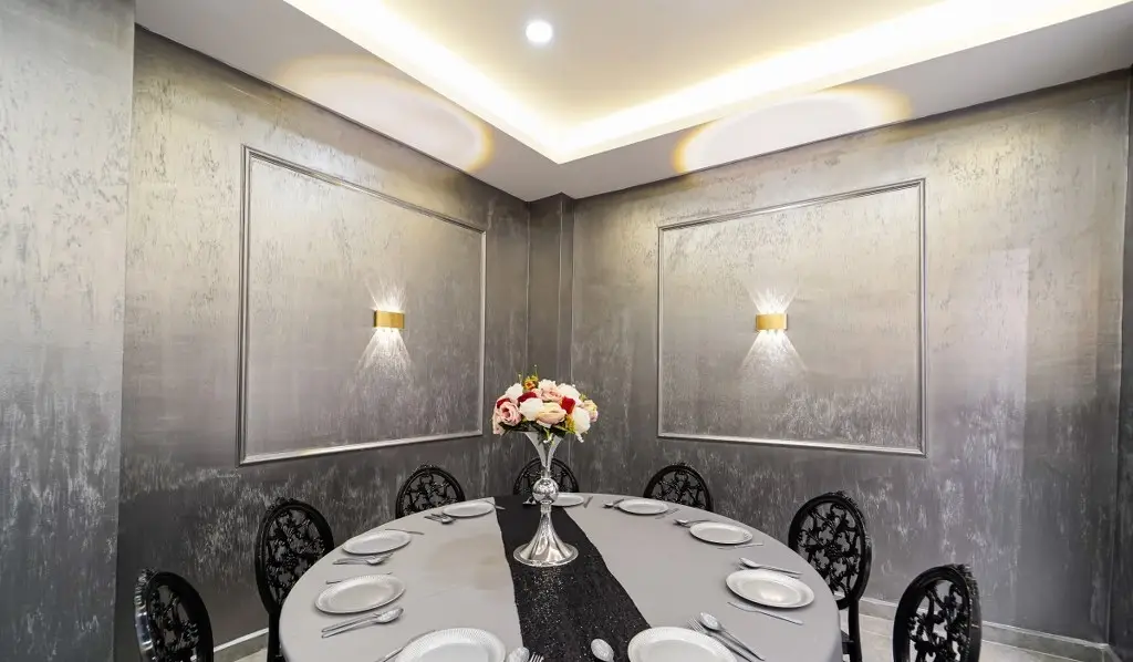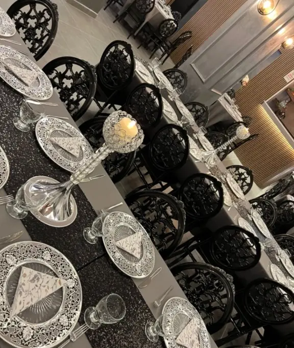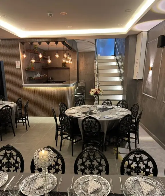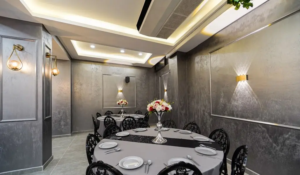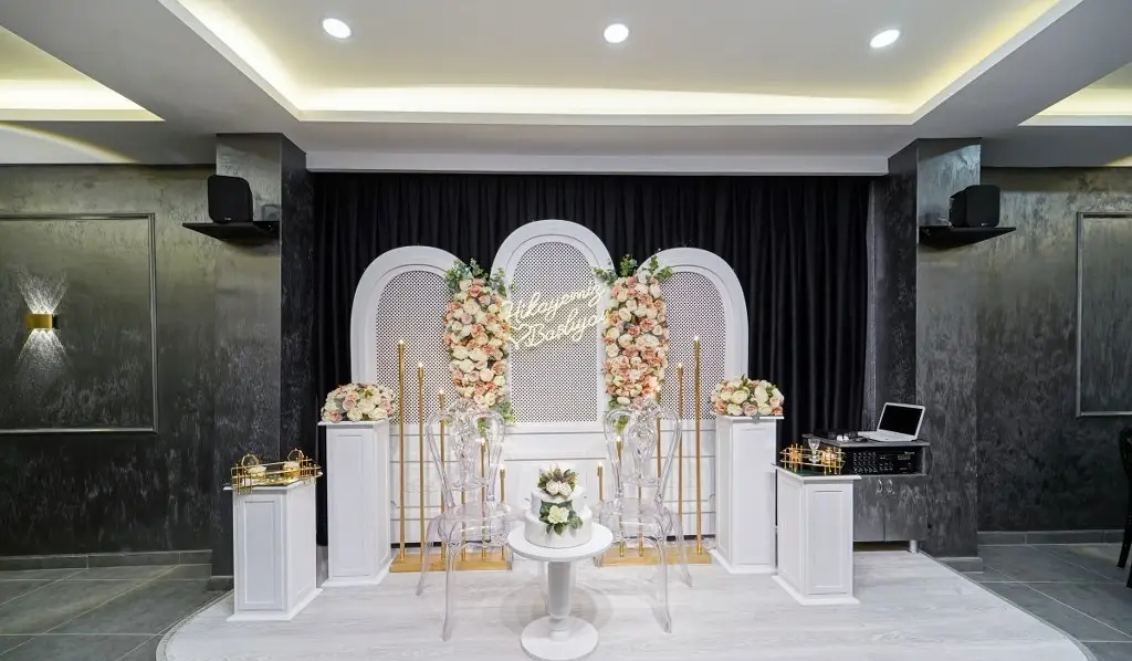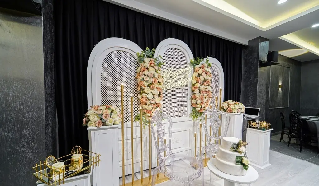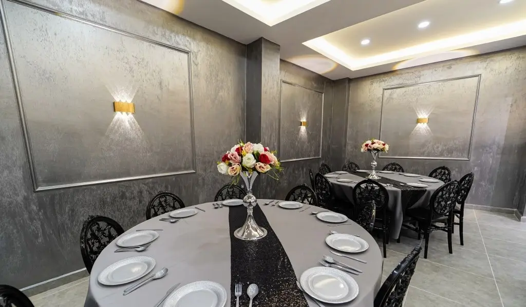Koyu gri tonlarının hakim olduğu sofistike dekorasyonumuzla, davet alanınızı hayalinizdeki gibi tasarlıyoruz. Siyah/gold veya gri/siyah tema seçenekleri, nozze model zarif sandalyeler, kristal mumluklar ve göz alıcı çiçek buketleriyle estetik bir bütünlük sunuyoruz. İsteğinize özel nişan masası süslemeleriyle, her detayda mükemmelliği hedefliyoruz.