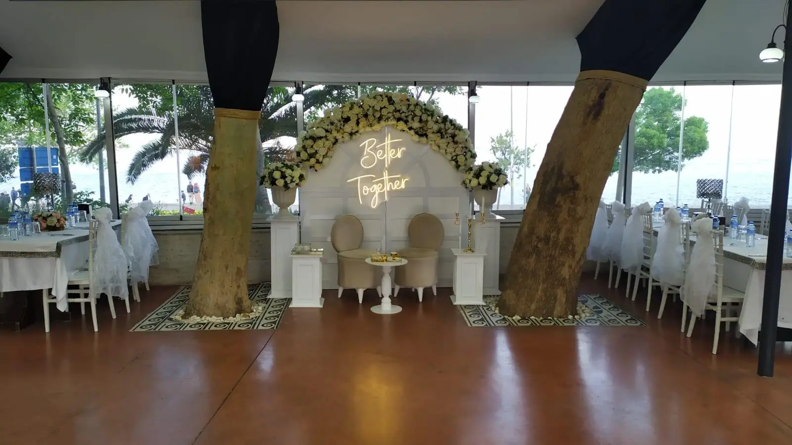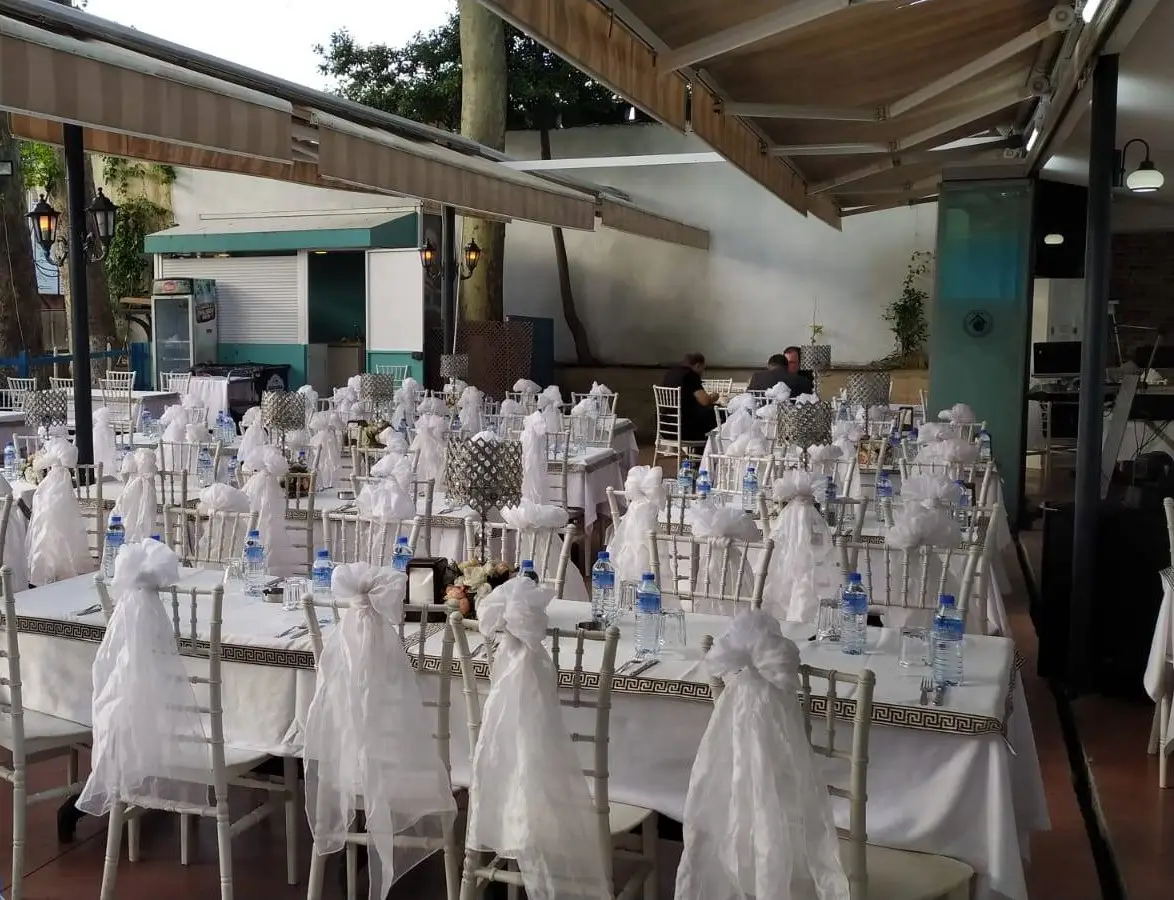 Bu köklü mekân 320 kişi kapasiteli açık alanının dışında 120 kişilik kapalı alanı ile de hizmetinizde. Böylelikle olası istenmeyen hava koşullarına karşı endişe etmenizi gerektiren bir durum da ortadan kalkmış oluyor. Son derece şık bir dekorasyon ile tasarlanmış iç mekânı yüksek tavanlı ve kolonsuz. Böylelikle bu kıymetli gününüzü ölümsüzleştirecek kusursuz fotoğraf ve video kayıtlarına sahip olmak çok daha kolay. Nişan, söz gibi organizasyonlar için tercih edebileceğiniz dış mekânı ise şehrin göbeğinde yeşile ve maviye bir kaçamak niteliğinde.