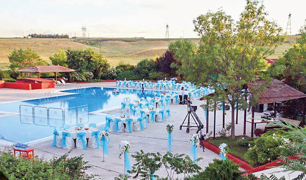 Ankara ilinin Gölbaşı ilçesinde konumlanan Capital Country Club, geniş yeşil alanıyla düğün, kına ve nişan gibi organizasyonlara ev sahipliği yapıyor. Açık ve kapalı davet alanı sunuyor. Havuz başı ve kır düğünü konseptleriyle düşlerinizi süsleyen düğünün tercihi size bırakılıyor. Yemekli organizasyonu bulunan mekan, menüde yapığınız değişikliğe göre 100 TL’den başlayan fiyatları ile hizmet veriyor.