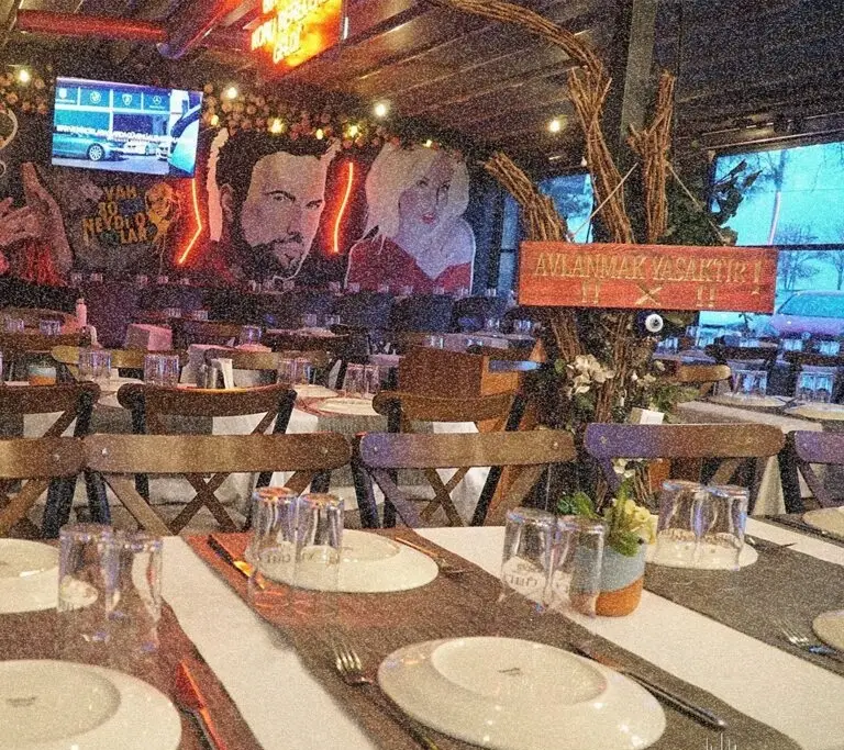 Doğal ahşap dokunuşları ve modern tasarımıyla Chila Meyhane, sıcaklığı ve şıklığı bir araya getiriyor. Aydınlatmada pop art esintileri ve neon yazılar ile mekana dinamik bir enerji katarken, nostaljik duvar boyamalarıyla da benzersiz bir atmosfer yaratıyor. Açık renk örtüler ve ahşap mobilyalarla zenginleştirilmiş mekanımız, her kutlamaya özel bir zarafet katıyor.