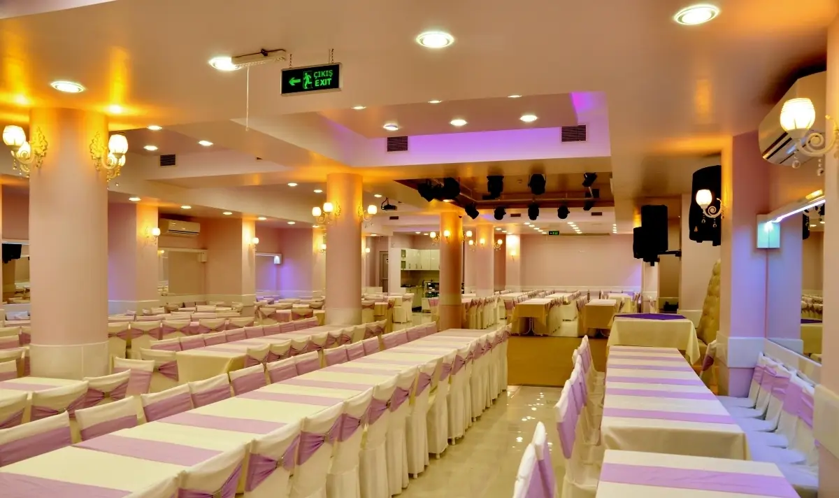 Çınaraltı Düğün Salonu kapalı alan kapasitesi 100 - 450 kişiliktir