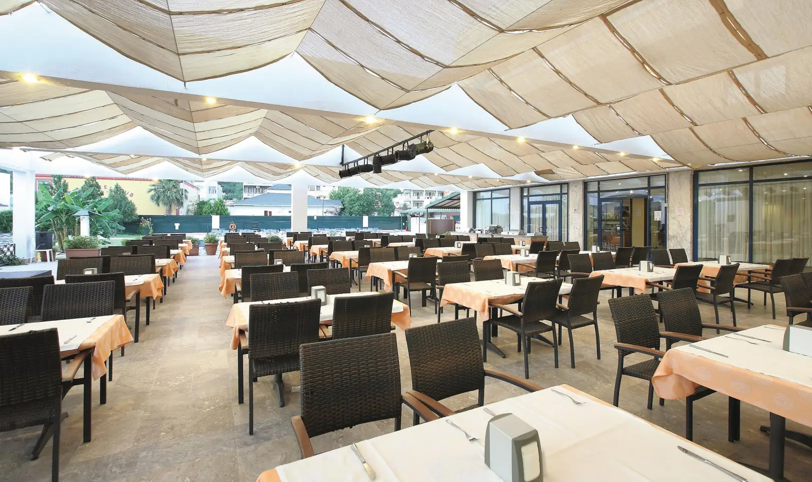 07.30 - 09.30 arasında sabah kahvaltısı, 12.30 - 14.00 arasında öğlen yemeği ve 19.30 - 21.30 arasında akşam yemeği açık büfe şeklinde servis edilmektedir.