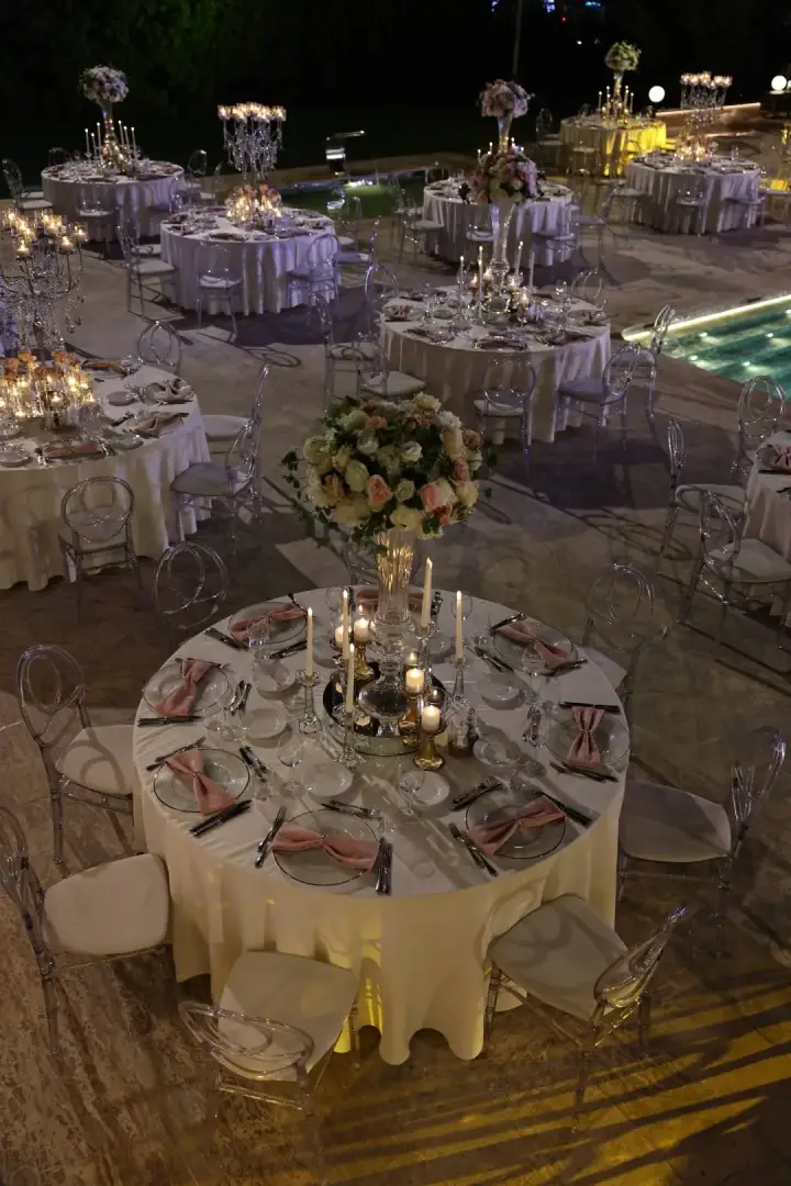 Mutfak ekibimizin başarılı ellerinden çıkan zengin menü seçenekleriyle, düğün yemeğinizde bir gastronomi şölenine dönüşecek. Çocuklar için özel menüler, vegan ve özel diyet gereksinimlerine uygun seçenekler ile her bir misafirinizi ağırlamaya hazırız. Kokteyl düğünleriniz için de birbirinden leziz ikramlarımız mevcut.