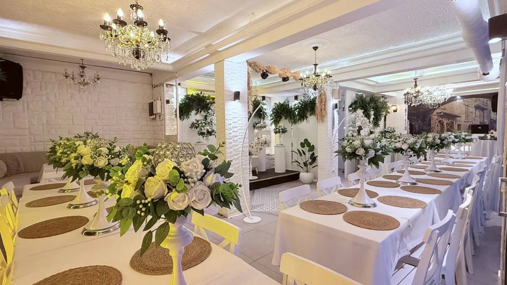 Mekanın yüksek tavanı ve ferah iç tasarımı, kapalı alan olmasına rağmen geniş ve aydınlık bir atmosfer yaratıyor. Dekorasyon detaylarında ise zarafet ön planda. Şamdanlar, suplalar, yapay çiçek süslemeler ve özel aydınlatma detaylarıyla davet alanı romantik bir ambiyansa bürünüyor. Ayrıca gelin tagı, masa süsleme ve dekorasyon seçenekleriyle her konseptte kişiselleştirilebilir bir atmosfer sağlanıyor.