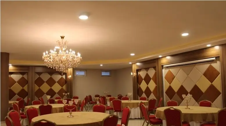 Küçük çaplı organizasyonlarınıza ev sahipliği yaparken, gecenizi özel detaylarla tasarlamak bizim için bir ayrıcalık. Kırmızı ve krem sandalyeler, gösterişli avizeler, ayaklı şamdanlar ve çiçek aranjmanları ile dekorasyonumuzu tamamlayarak, hayal ettiğiniz atmosferi yaratıyoruz.