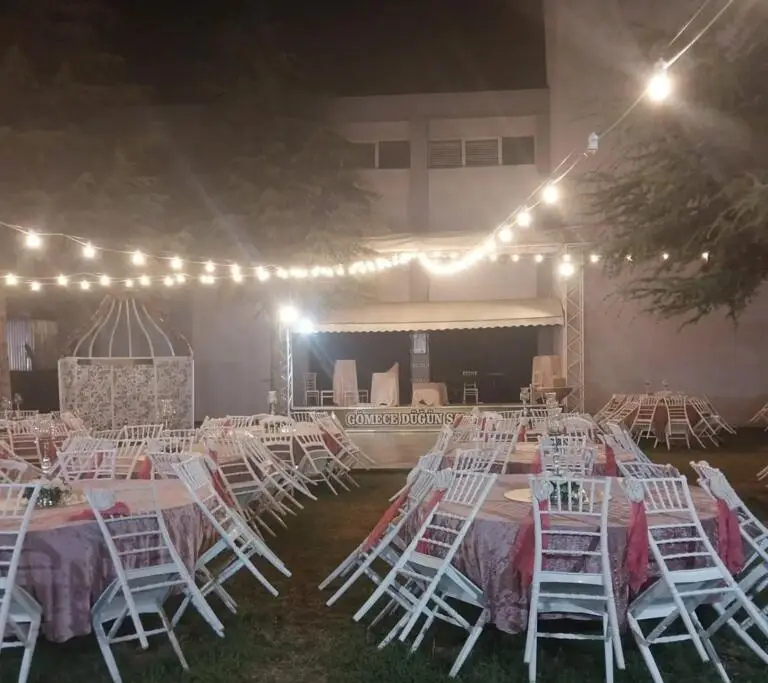 Eskişehir'in kalbinde, doğanın tüm güzellikleriyle bezenmiş, masal gibi bir kır düğünü deneyimi sunan Gömece Kır Düğün Salonu, rüya gibi bir gün geçirmek isteyen çiftler için ideal bir seçenektir. Her türlü hava koşuluna hazırlıklı, geniş kapasiteli iç ve dış mekan seçenekleriyle hizmetinizdeyiz. Kendine özgü şıklığı ve profesyonel ekibiyle Eskişehir'de kır düğünü denilince akla gelen ilk yerlerden biri olan mekanımız, unutulmaz anılar biriktirmeniz için sizleri bekliyor.