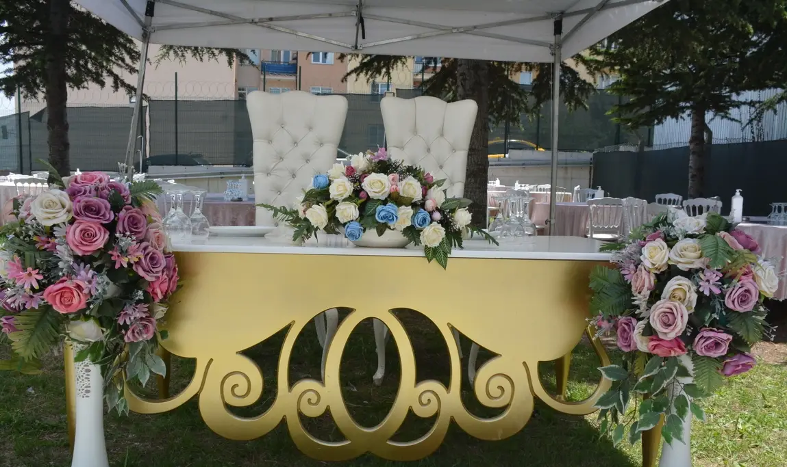 Bahçemizdeki ve iç mekandaki düğünlerinizde, beyazın ve toz pembesi gibi zarif renklerin hakim olduğu, estetik detaylarla süslenmiş dekorasyonlarla sade şıklığı ön plana çıkarıyoruz. Etkileyici çiçek düzenlemeleri ve asil altın dokunuşlar ile gecenizi unutulmaz kılan detaylar ekliyoruz.