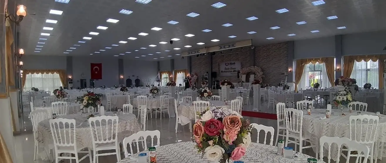 Düğün, hayatınızın en özel günlerinden biridir ve bu gün her şeyin kusursuz olmasını istersiniz. Sakarya'nın en iddialı mekanlarından biri olan Hanlı Kır Düğün Salonu, bu özel gününüzde yanınızda olmaktan onur duyar. Her türlü organizasyona ev sahipliği yapma deneyimimizle, sizlere unutulmaz bir düğün deneyimi sunmayı hedefliyoruz. Salonumuz, 500 kişilik geniş kapasitesi ve kolonsuz, ferah yapısı ile davetlilerinize konforlu bir ortam sağlar. Özenle seçilmiş dekorasyonumuz ve zarif ışıklandırmamız ile bembeyaz bir düğün hayal edin, biz gerçeğe dönüştürelim. Kişiye özel menü seçenekleri ve profesyonel ekibimizle, her detayın üstünde duruyoruz. Anılarınızı ölümsüzleştirecek fotoğraf hizmetimizle de yanınızdayız. Sakarya'da rüya gibi bir düğün için Hanlı Kır Düğün Salonu'nu tercih edin.