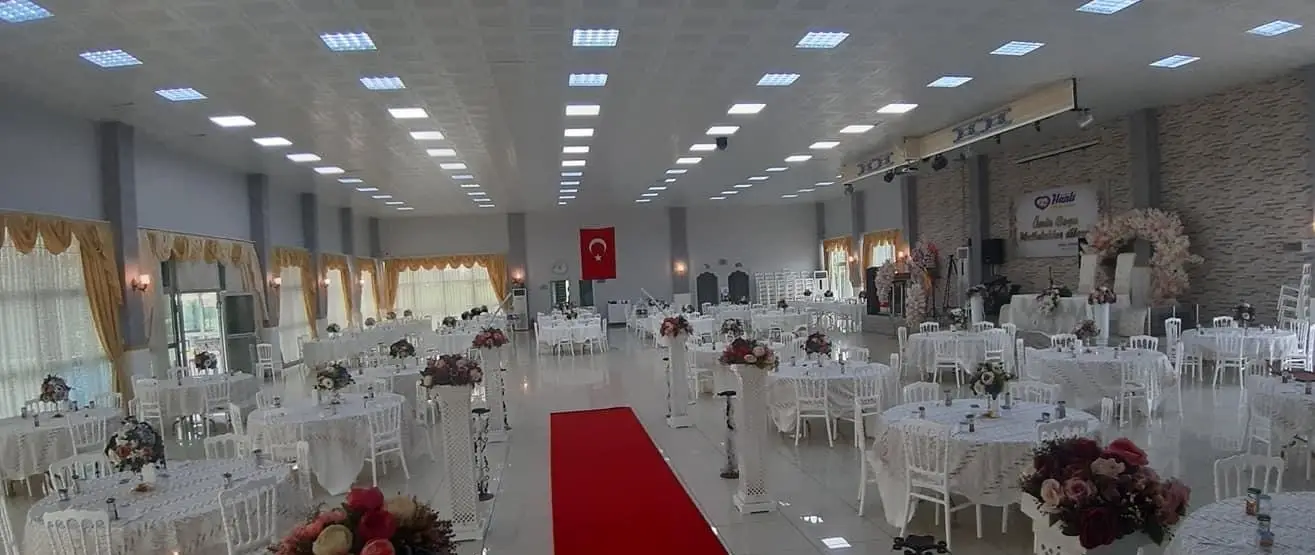 Hanlı Düğün Salonu kapalı alan kapasitesi 100 - 450 kişiliktir