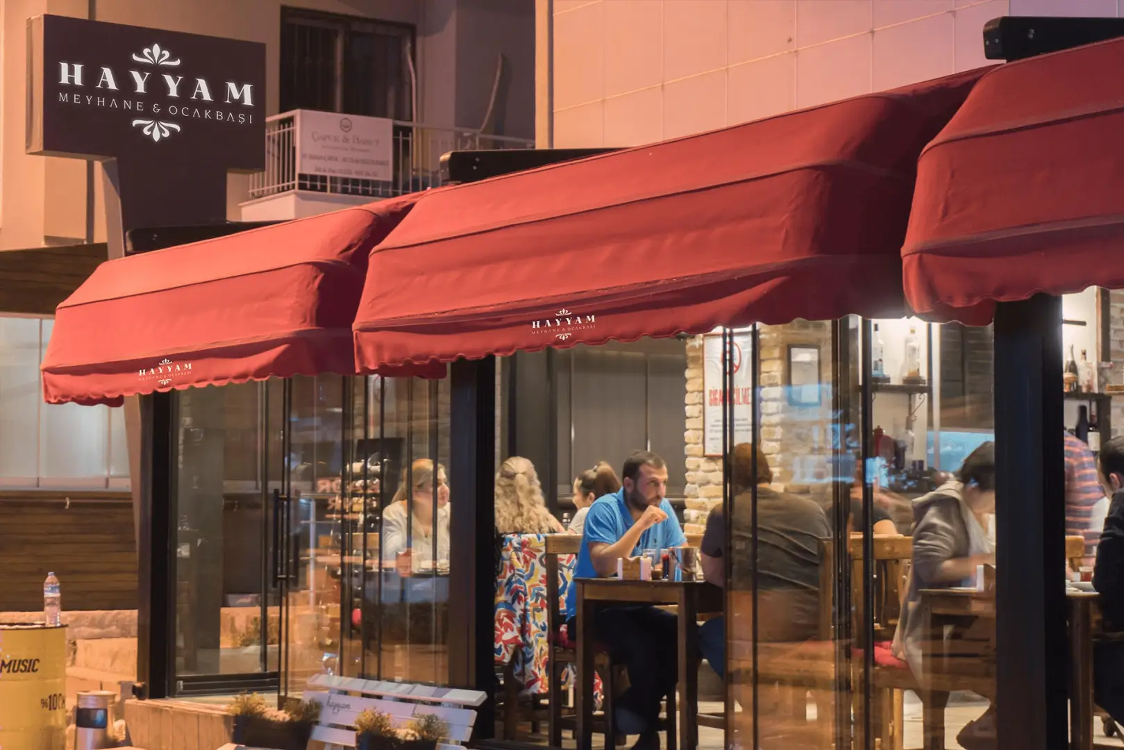 Hayyam Meyhanesi açık alan kapasitesi 30 - 50 kişiliktir, kır bahçesi kapasitesi 30 - 50 kişiliktir, kapalı alan kapasitesi 50 - 100 kişiliktir