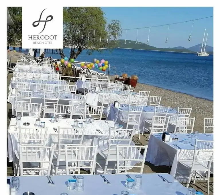 Herodot Beach Otel, Bodrum'un göz kamaştıran doğası içinde yer alan, huzurlu ve özgün bir atmosfere sahip, benzersiz güzellikleriyle dikkat çeken bir mekândır. Sizleri ve sevdiklerinizi hayatınızın en özel anlarını, unutulmaz kılacak bir atmosferde ağırlamak için sabırsızlanıyoruz. Profesyonel ekibimiz, detaylara verdiğimiz önem ve kalite odaklı çalışma anlayışımızla, rüya gibi bir düğün organizasyonuna imza atmak için buradayız. 200 kişilik açık ve 100 kişilik kapalı davet alanlarımız, göz alıcı süslemeleri, özelleştirilebilir leziz menü seçenekleri ve geniş dans pisti ile Herodot Beach Otel, mutluluğunuzu taçlandıracak. Yaz aylarında yoğunluk nedeniyle düğün rezervasyonlarınızı öncelikle nisan, mayıs, eylül, ekim ve kasım aylarında gerçekleştirmenizi öneririz. Hayallerinizdeki düğün için, deneyimli ekibimizle her zaman iletişime geçebilirsiniz.