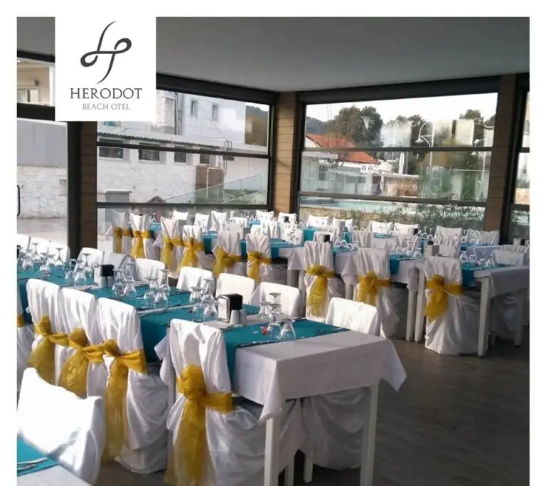 Herodot Beach Otel Otelde Düğün fiyatları hafta içi yemekli kişi başı ₺500,00 - hafta sonu yemekli kişi başı ₺750,00