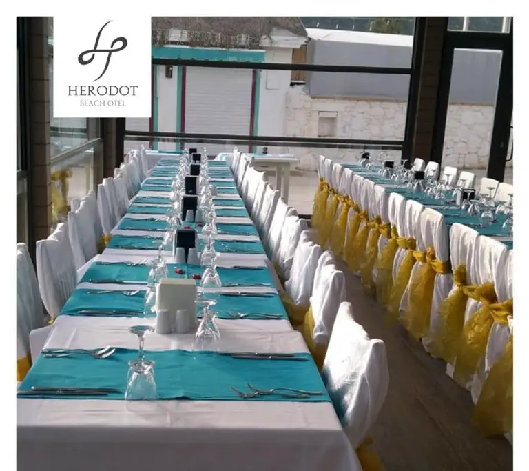 Herodot Beach Otel olarak, yöresel lezzetlerimizin modern sunumlarla harmanlandığı, görsel olarak da etkileyici menüler hazırlıyoruz. İsteğinize göre menüde değişiklik yapma özgürlüğü ile size ve misafirlerinize unutulmaz bir ziyafet vaad ediyoruz. Düğün sonrası konforlu odalarımızda konaklama imkanı sunarak, keyifli anlarınızın tadını çıkarmaya devam edebilirsiniz.