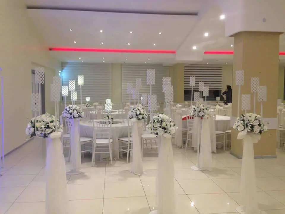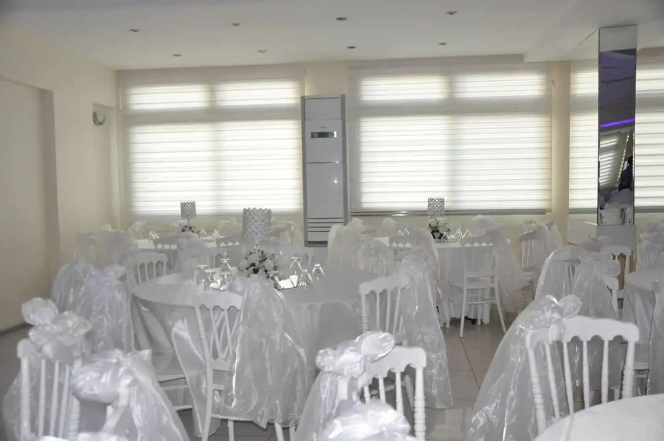 Öncelik evlenecek çiftlerde. Düğünlerinize tüm hizmetleri sağlamaktayız. Nişan, kına gecesi, düğüne kadar tüm özel günlerinde evlilik hazırlığındaki çiftlerin özel geceleri için bizi seçmelerini öneriyoruz. Bütün bunların haricinde yapacağınız açılış, toplantı, baby shower ve sünnet, davet ve resepsiyon ya da yaş günü partileri gibi aklınıza gelecek diğer etkinlikleri bizde gerçekleştirmeniz mümkün... Ekibimiz ve mekanımız her türlü organizasyonda hizmetinizde! Özellikle düğünleriniz, kına geceleriniz, miniklerinizin mezuniyet, gösteri, sünnet düğünü ve okuma bayramları ile yıl sonu gösterileri için uygun olan geniş ve ferah salonumuzda nezih bir ortam sağlayan kapalı alanımız ve geniş pistimizi çevreleyen havalandırma ve klima sistemlerimizle her mevsim her organizasyon için yanınızdayız. Bembeyaz örtülü masalar, bembeyaz süslenmiş sandalyeler tercih edebilirsiniz. Kristalli şamdanlar ve aynalı masa dizaynları ile şıklık tercih edebilirsiniz. Sizin için pek çok vazgeçilmez seçenek sunuyoruz. Dilediğiniz renk ve konsepte uygun giydirme yapılabilen renkli donanımımız ile masa düzenlemeleri, cam ya da taşlı, metal şamdanlar ve çiçek aranjmanları rüya gibi bir etkinlikte sizinle buluşuyor.