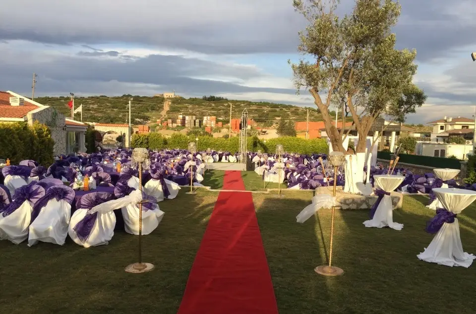 Çeşme Keyifli Düğün Salonu, İzmir'in Çeşme ilçesinde, kına geceleri ve özel etkinlikler için huzurlu ve doğal bir ambiyans sunan benzersiz bir yerdir. Yaz etkinlikleri için ideal olan bu bahçe, şehrin kalabalığından ve gürültüsünden uzakta unutulmaz anlar yaşamak isteyenler için mükemmel bir seçenektir. Kır bahçemizde, yemyeşil bir ortam eşliğinde yuvarlak masa ve şık Napolyon sandalyeler ile konforunuzu ve estetiği ön planda tutuyoruz. Siz hayal edin, biz gerçekleştirelim prensibiyle, sizin arzu ettiğiniz tüm detayları büyük bir titizlikle planlıyor ve uyguluyoruz. İster kendi menünüzü belirleyin ister bizim önerilerimizle özel bir menü oluşturun, her iki durumda da davetinize yakışır bir ziyafet sunacağımızdan emin olabilirsiniz. Çocukların da eğlendiği, yetişkinlerin huzur dolu vakit geçirdiği kına geceleriniz için Çeşme Keyifli Düğün Salonu sizleri bekliyor.