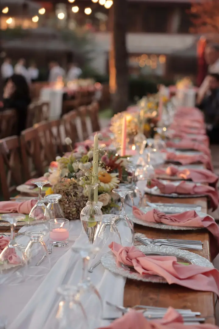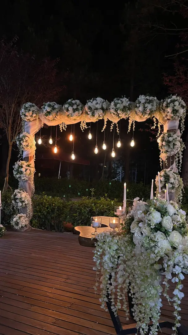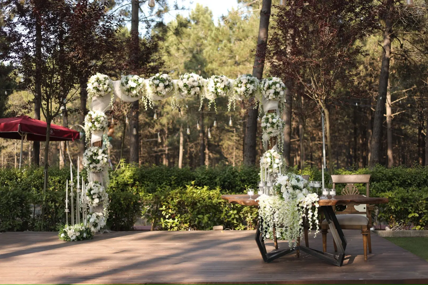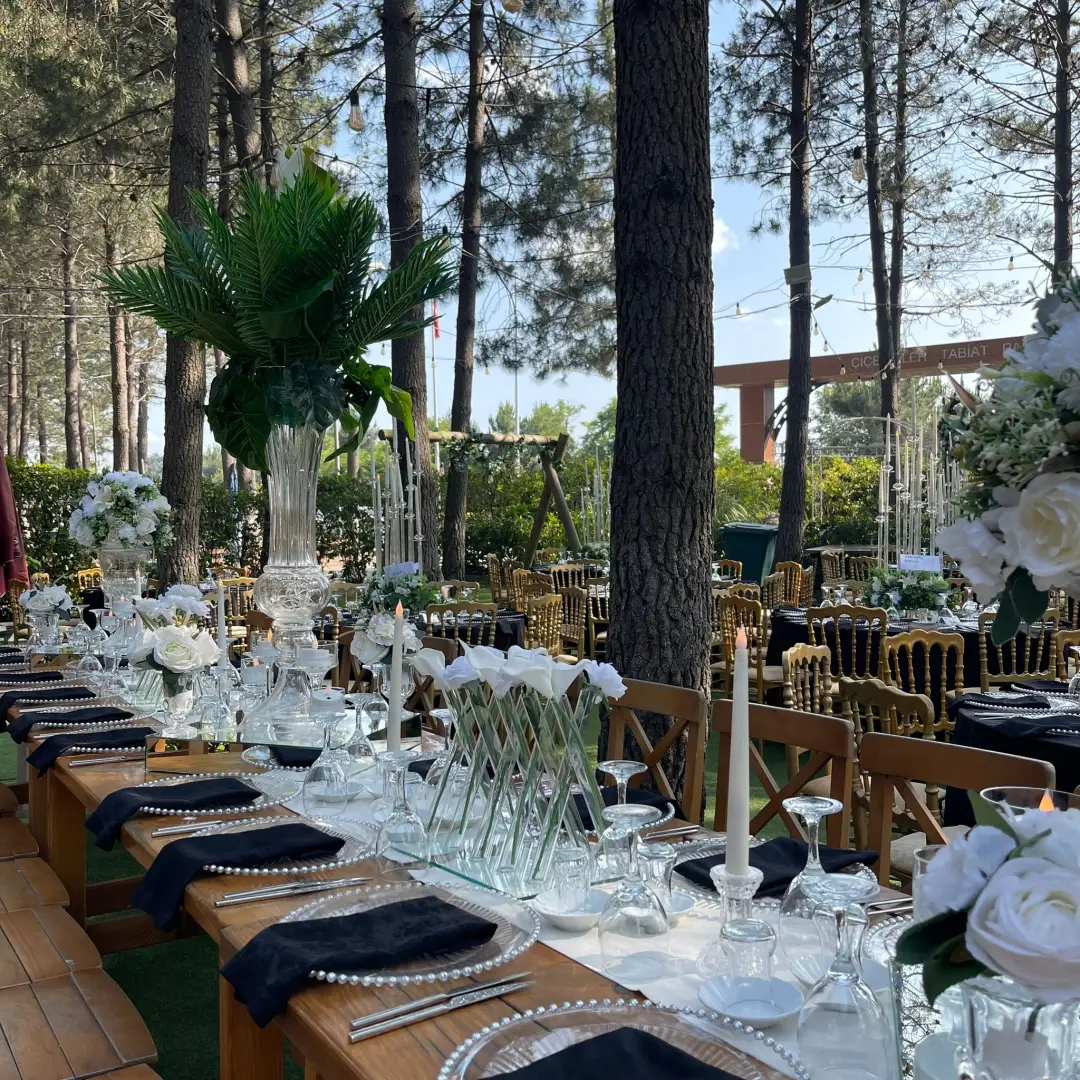 Özel yapım ahşap masalar, zarafetle süslenmiş masalar ve romantik atmosfer için özenle seçilmiş çiçekler... Her detayda kusursuzluğu ve zarafeti yakalayan dekorasyonumuzla, hayallerinizdeki düğünü gerçeğe dönüştürüyoruz. Her bir çiftimizin hayalindeki düğünü tasarlamak, bizim için bir tutku.