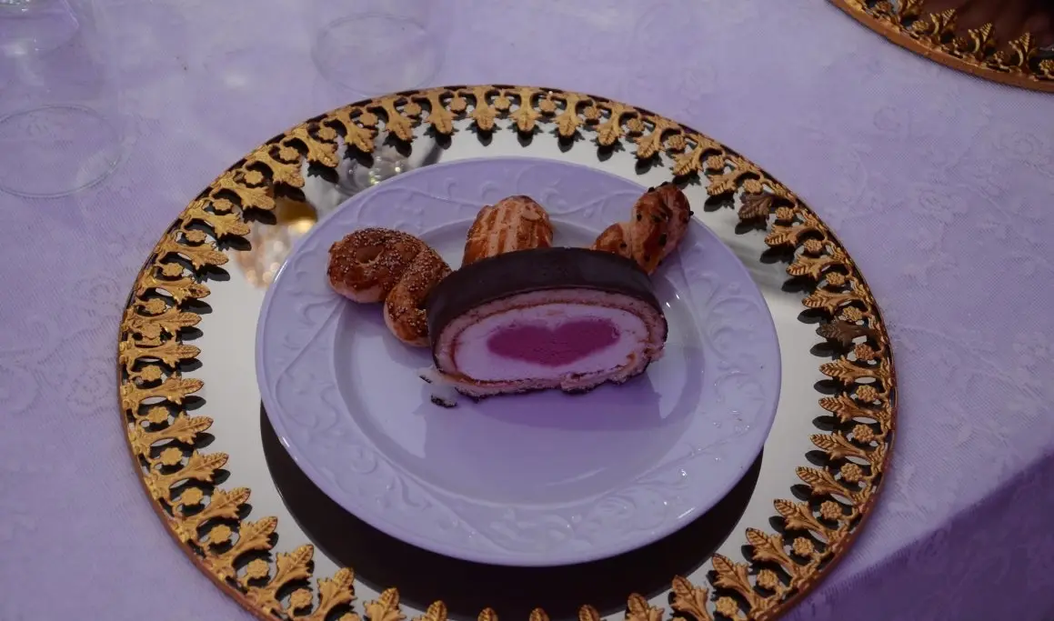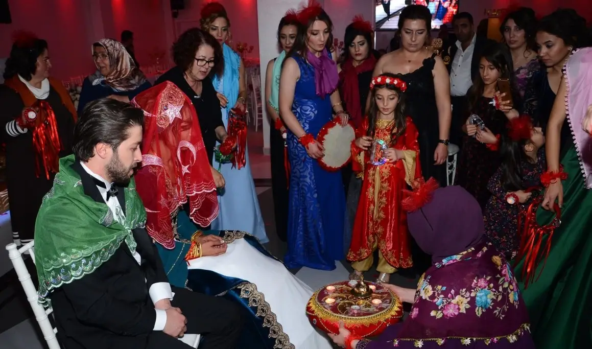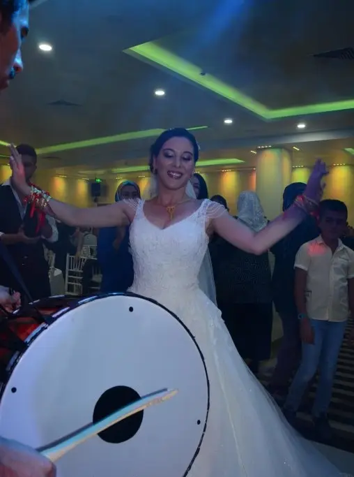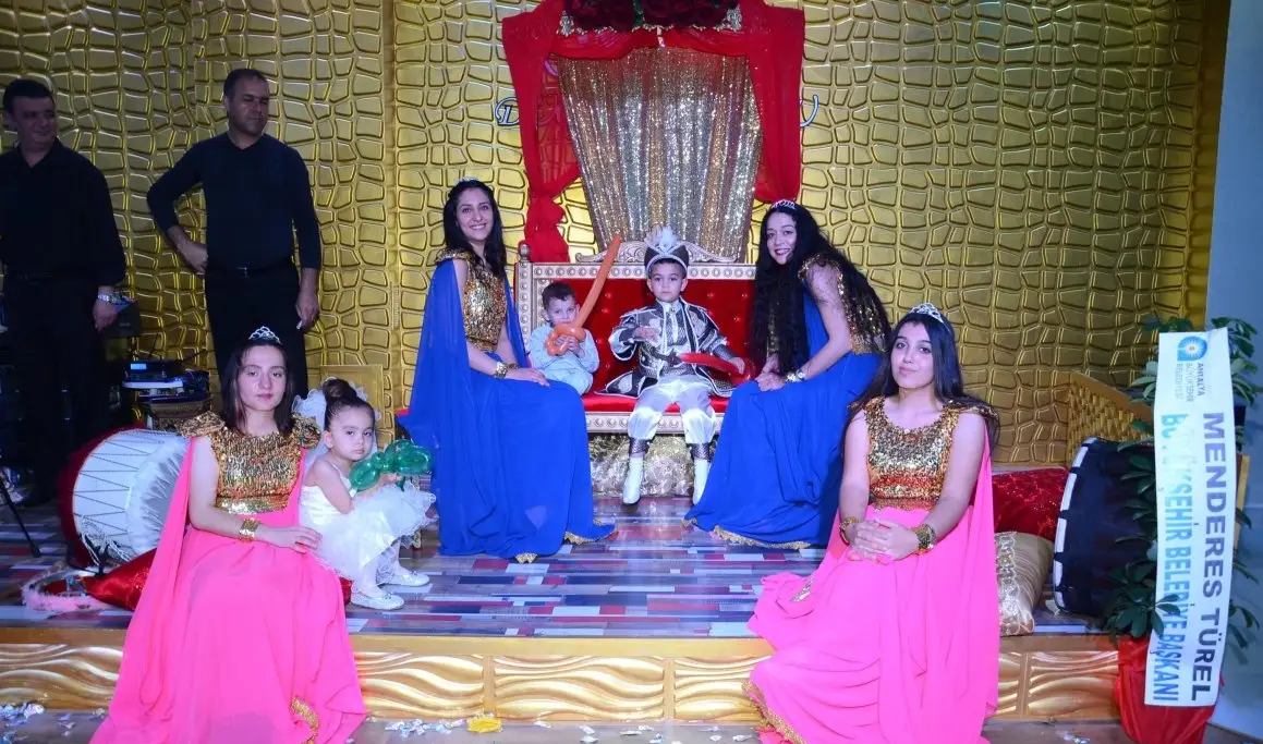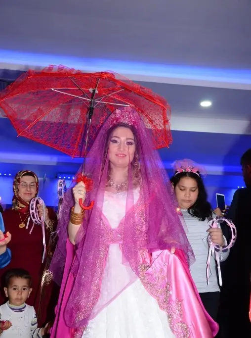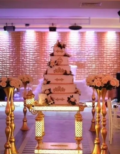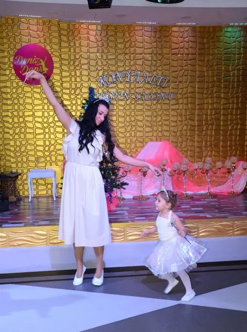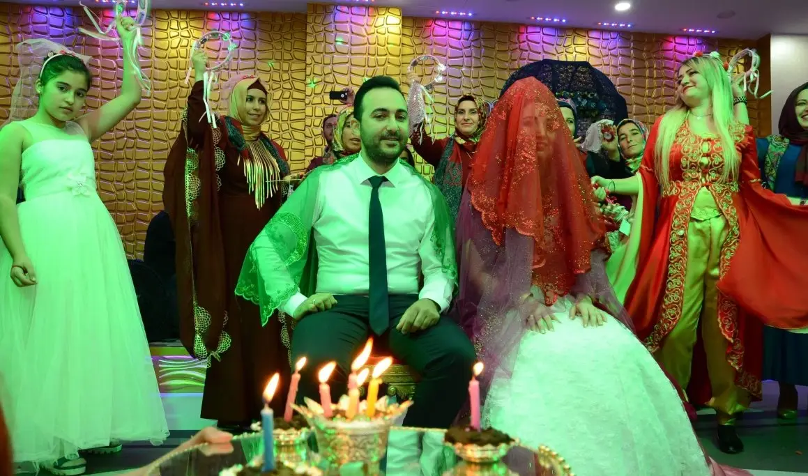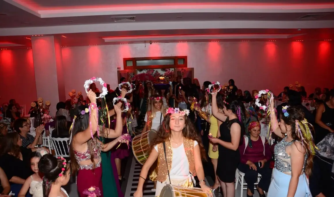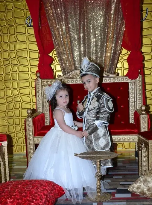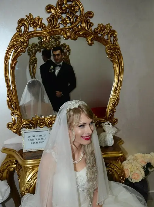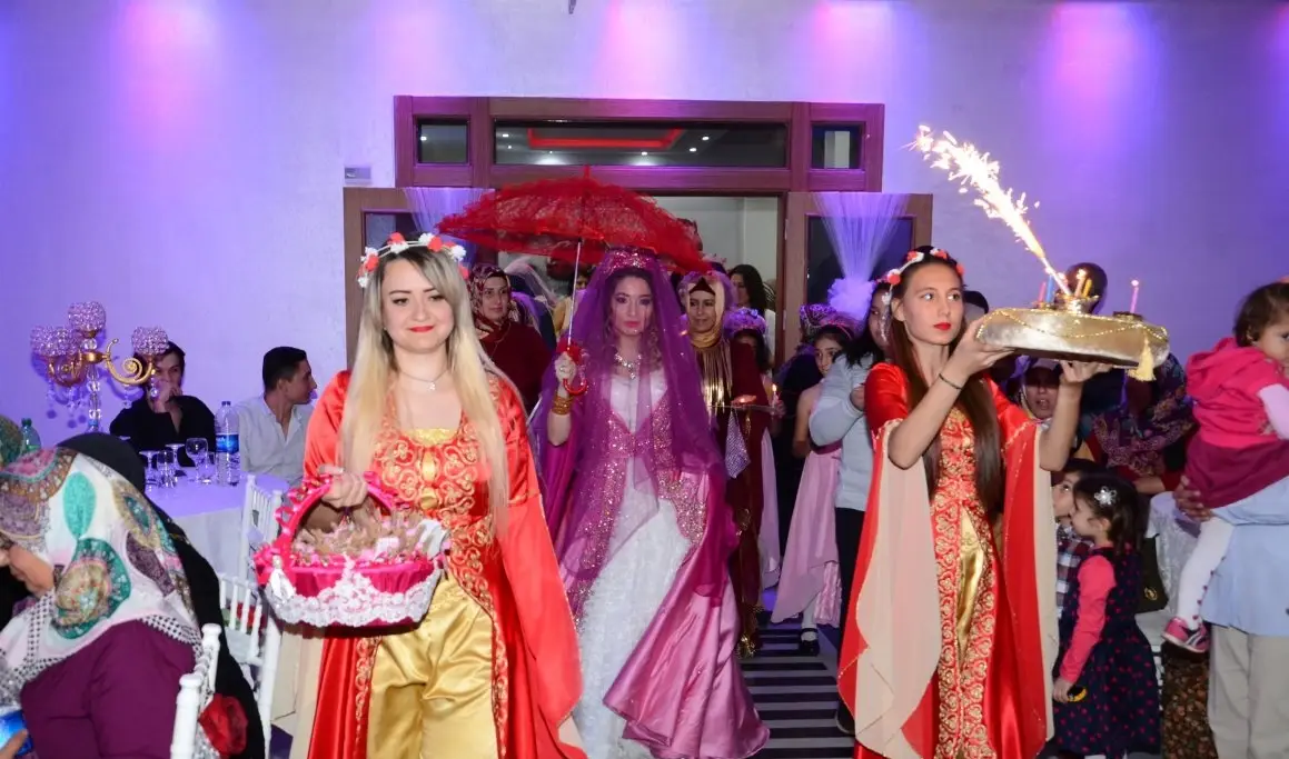 Beyaz ve gold renk uyumu ön plana çıkarılarak, yuvarlak masalar beyaz dantel işlemeli örtüler, altın pleksi suplalar ve kristal boncuklu şamdanlarla süslenmiştir. Beyaz tiffany sandalyeler kırmızı güllerle, gold vazo şeklindeki gelin yolu aksesuarları ve gold varaklı aynalarla dekorasyon tamamlanmıştır.