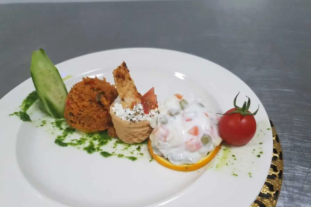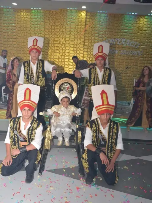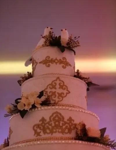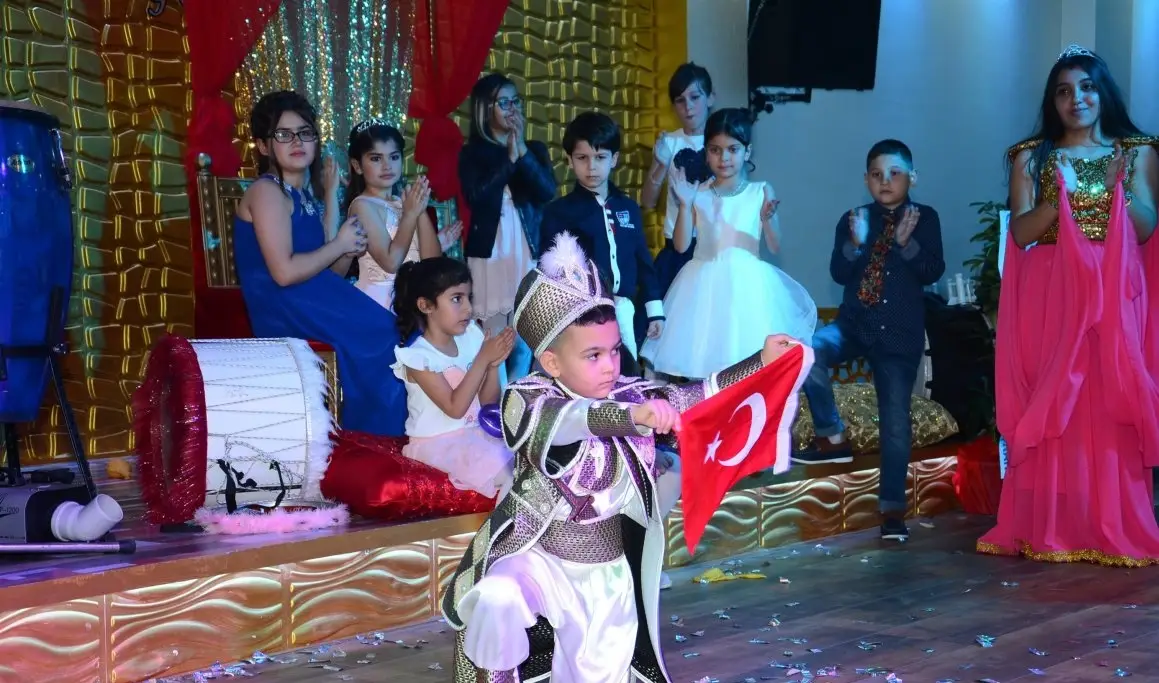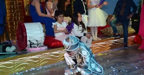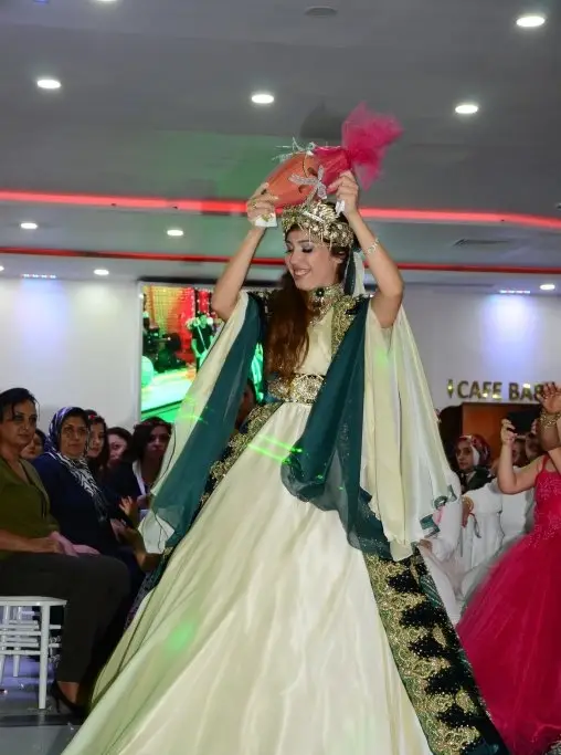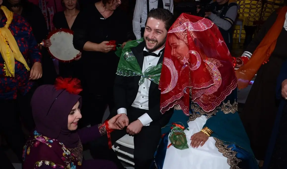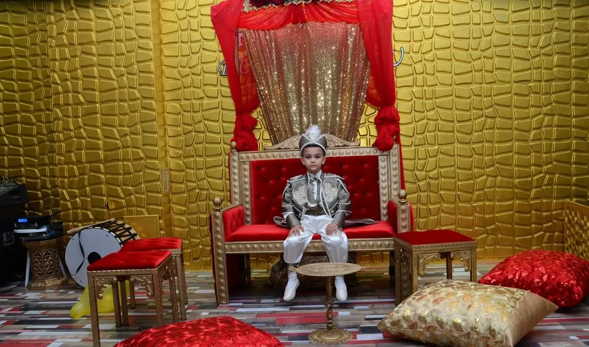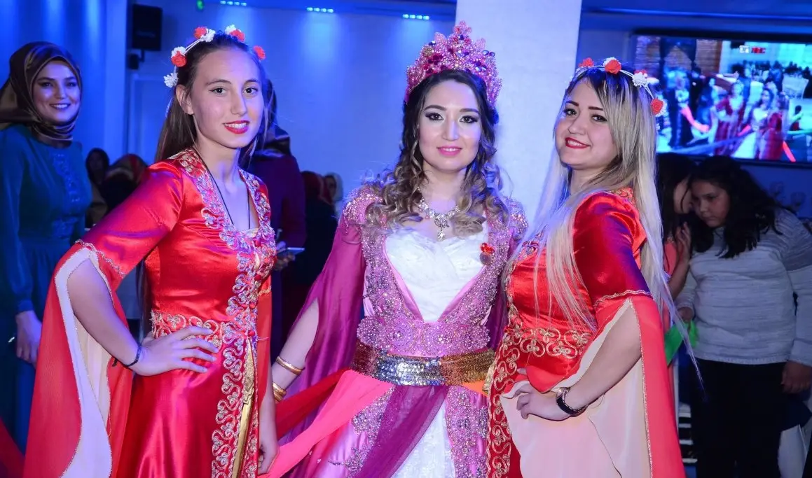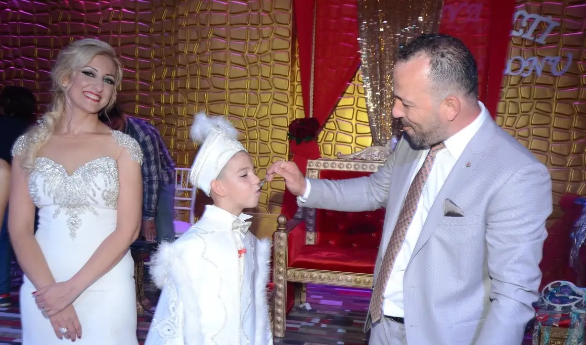Beyaz ve gold renk uyumu ön plana çıkarılarak, yuvarlak masalar beyaz dantel işlemeli örtüler, altın pleksi suplalar ve kristal boncuklu şamdanlarla süslenmiştir. Beyaz tiffany sandalyeler kırmızı güllerle, gold vazo şeklindeki gelin yolu aksesuarları ve gold varaklı aynalarla dekorasyon tamamlanmıştır.