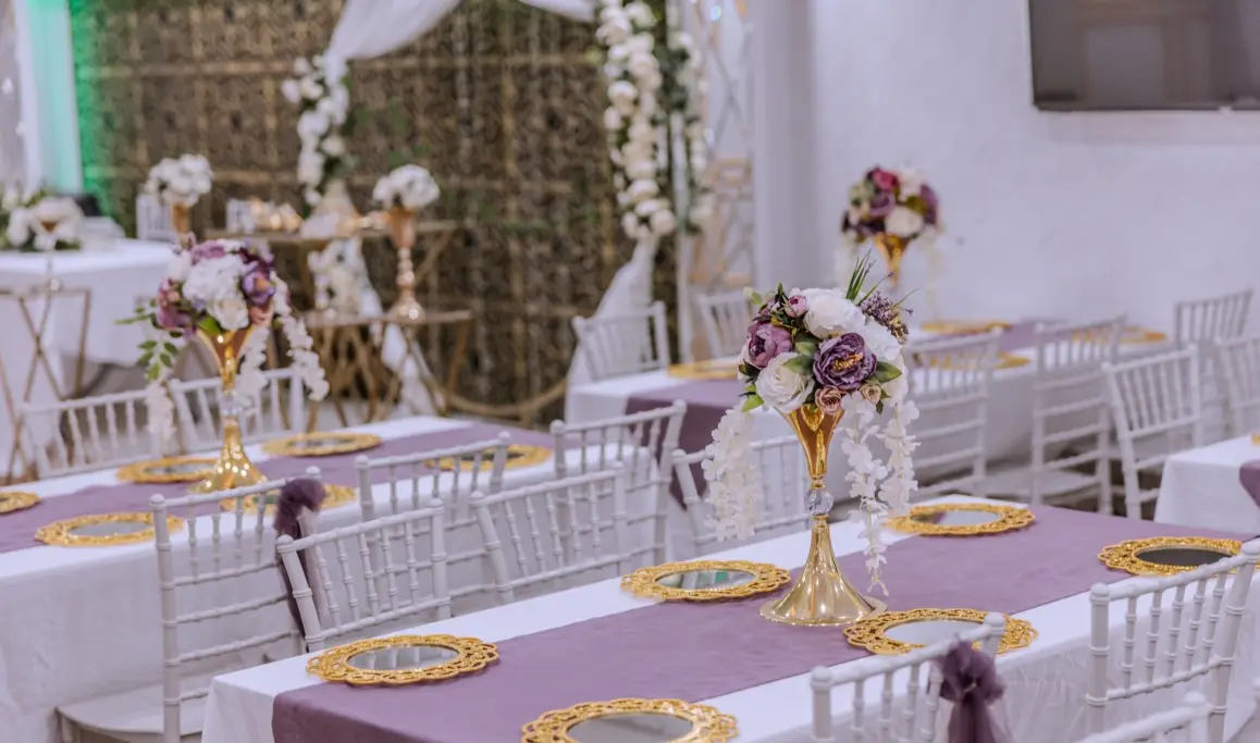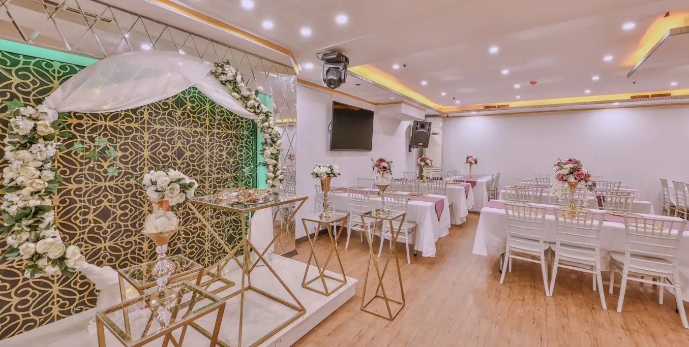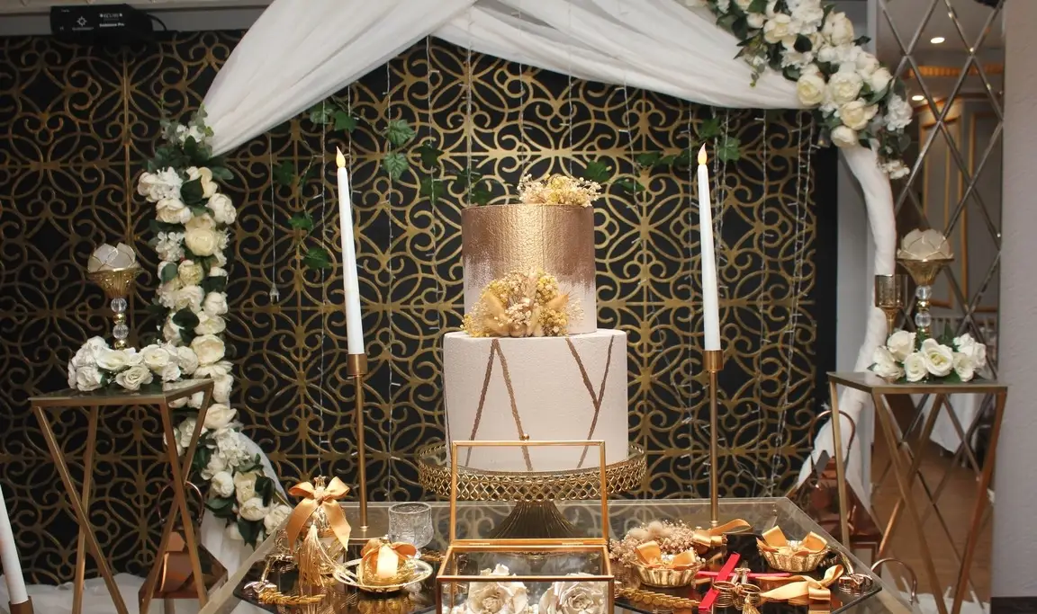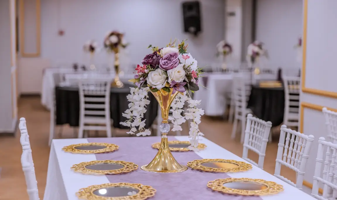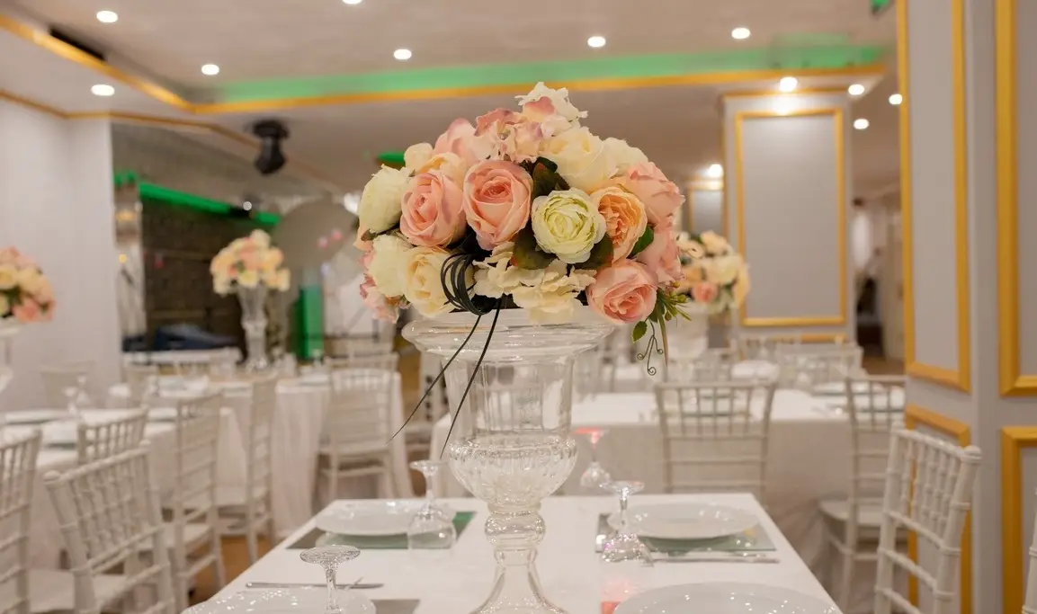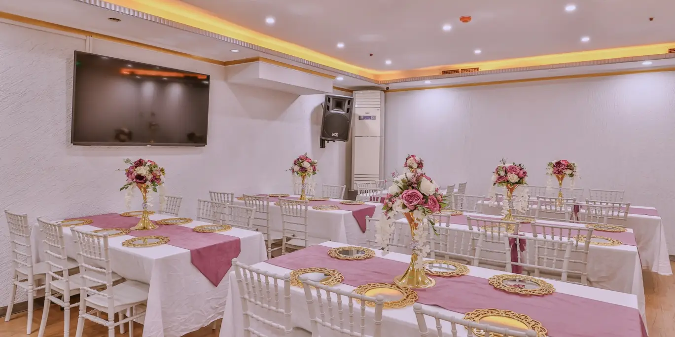 Beyazın saflığı ile zarafete bürünmüş mekanımızda, tiffany sandalyeler ve masa örtüleri başta olmak üzere, zarif gül buketleri ve aynalı suplalarla süslenmiş masa dizaynlarımızla davetlerinize estetik bir çerçeve kazandırıyoruz. Altın varak detaylarla hareket kattığımız dekorasyonumuz, özel günlerinizde sadelik ve şıklığı bir arada sunuyor.