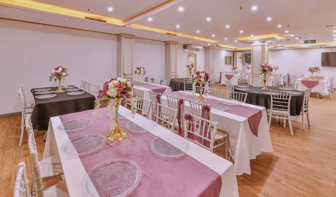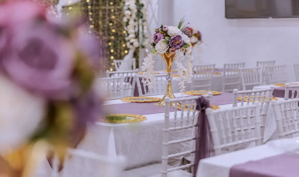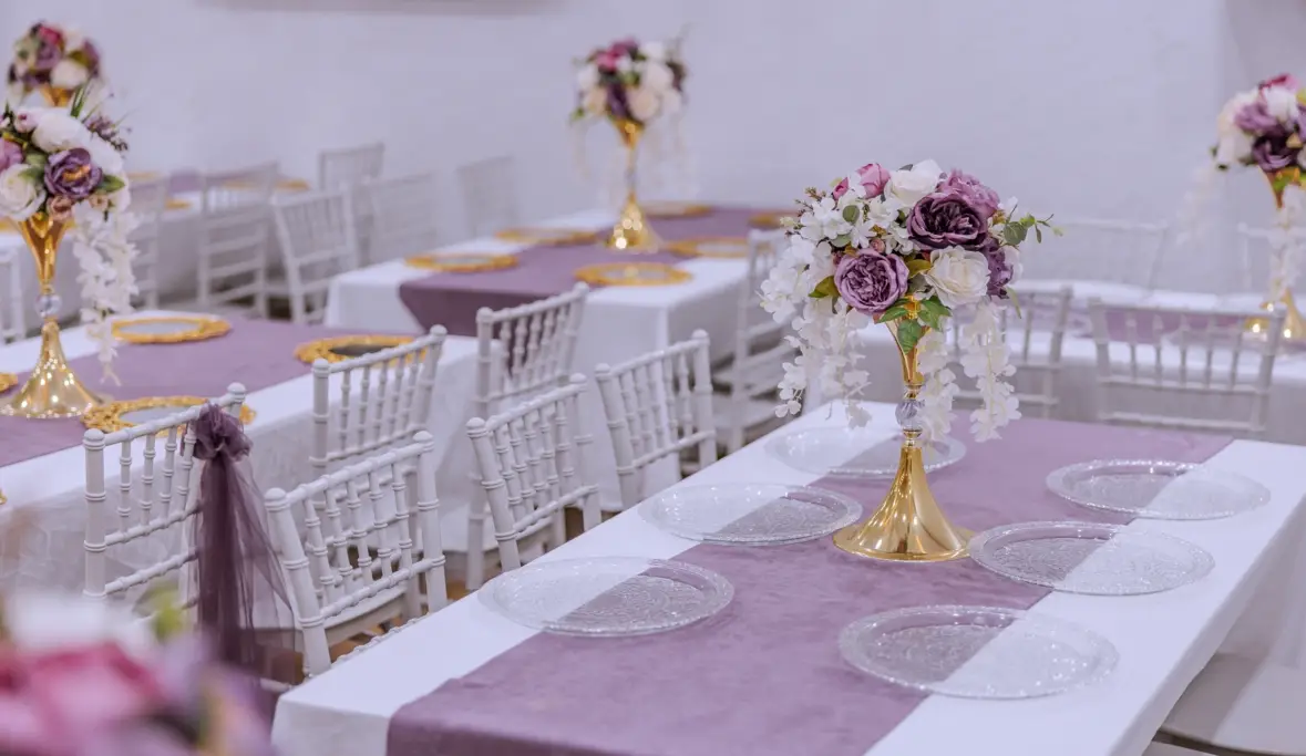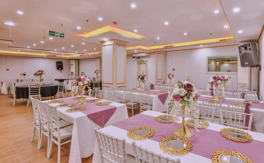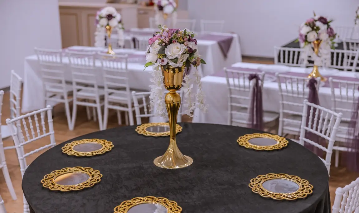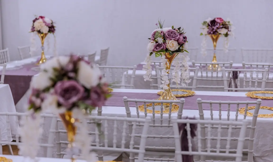Beyazın saflığı ile zarafete bürünmüş mekanımızda, tiffany sandalyeler ve masa örtüleri başta olmak üzere, zarif gül buketleri ve aynalı suplalarla süslenmiş masa dizaynlarımızla davetlerinize estetik bir çerçeve kazandırıyoruz. Altın varak detaylarla hareket kattığımız dekorasyonumuz, özel günlerinizde sadelik ve şıklığı bir arada sunuyor.