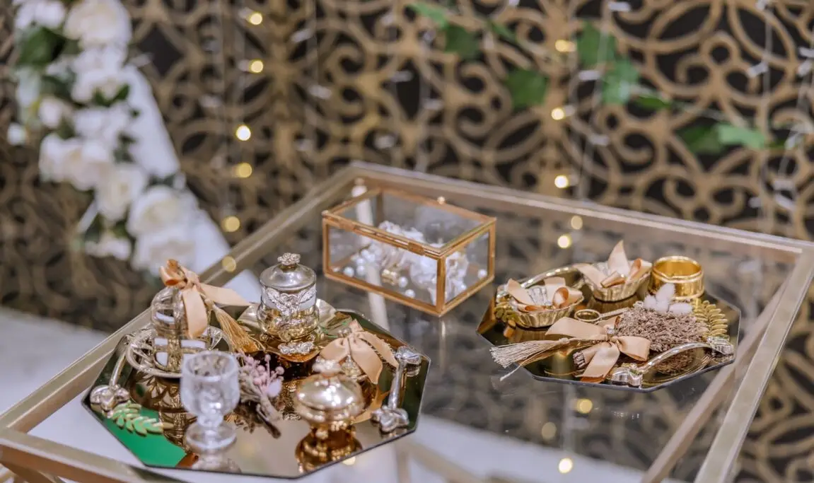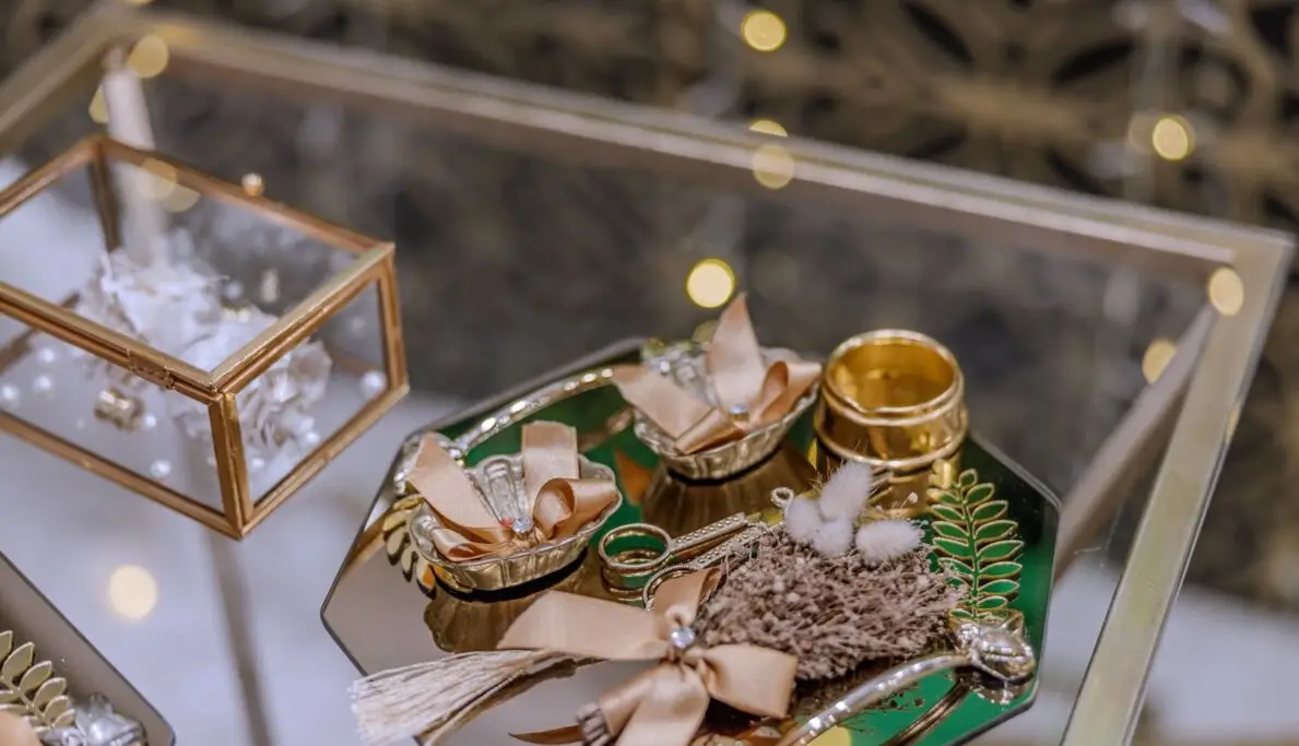 Nişan masası ve tepsisi hazırlığı, nişan çikolatası, fotoğraf ve video hizmetleri sunulmaktadır.